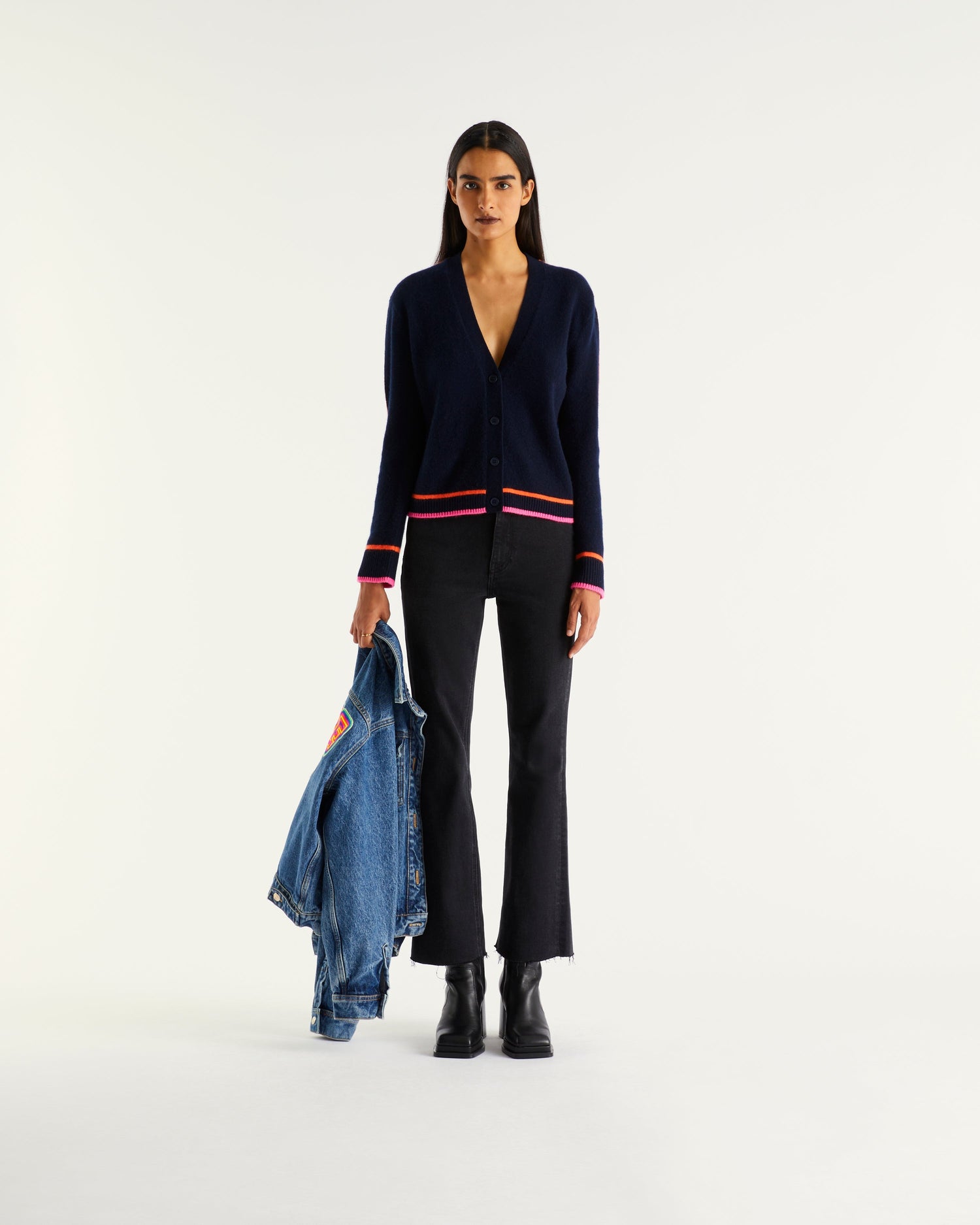 Short cardigan with contrasting bands 2 sons