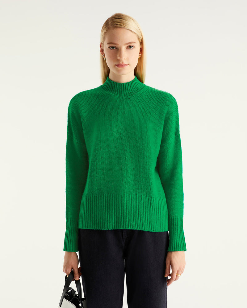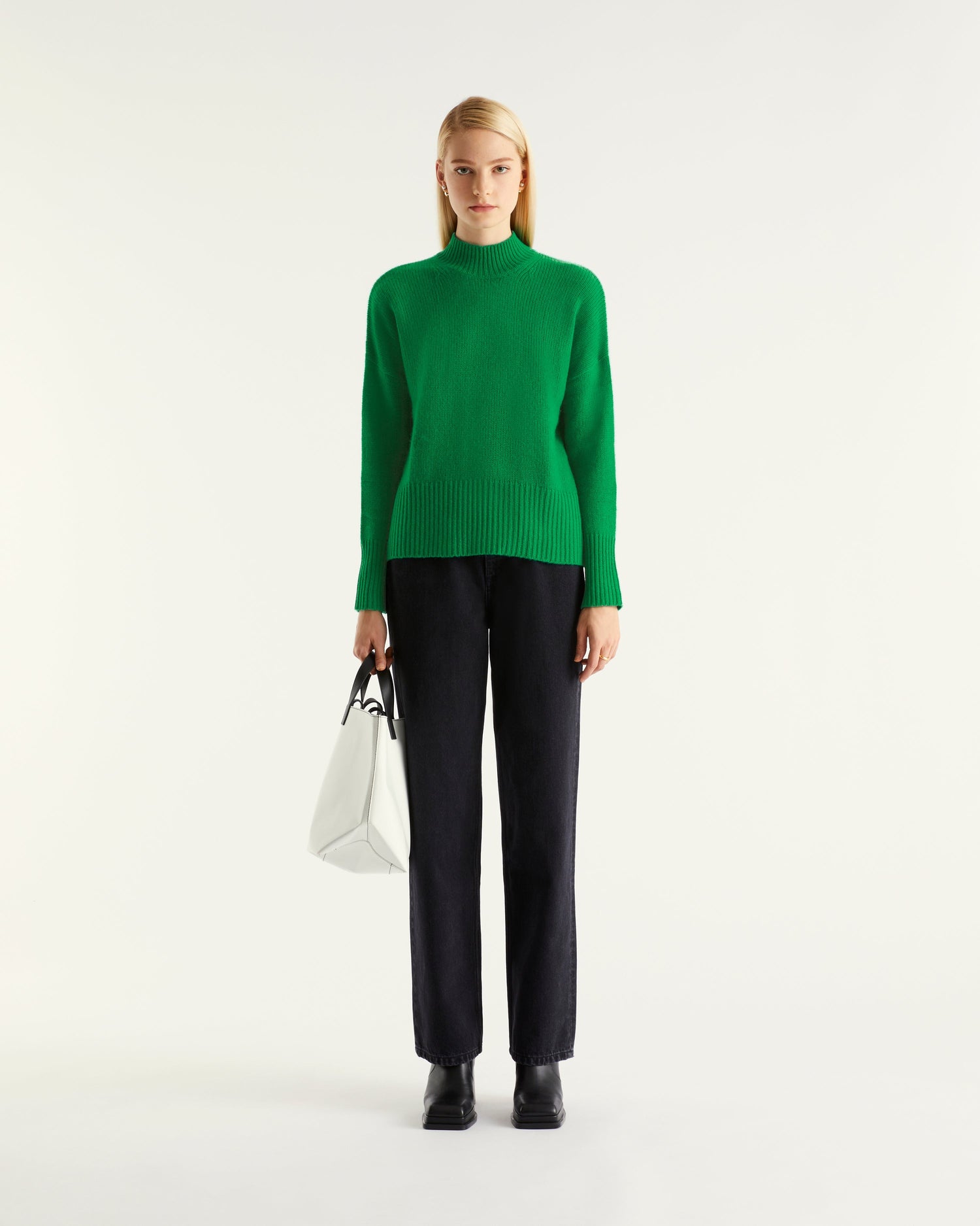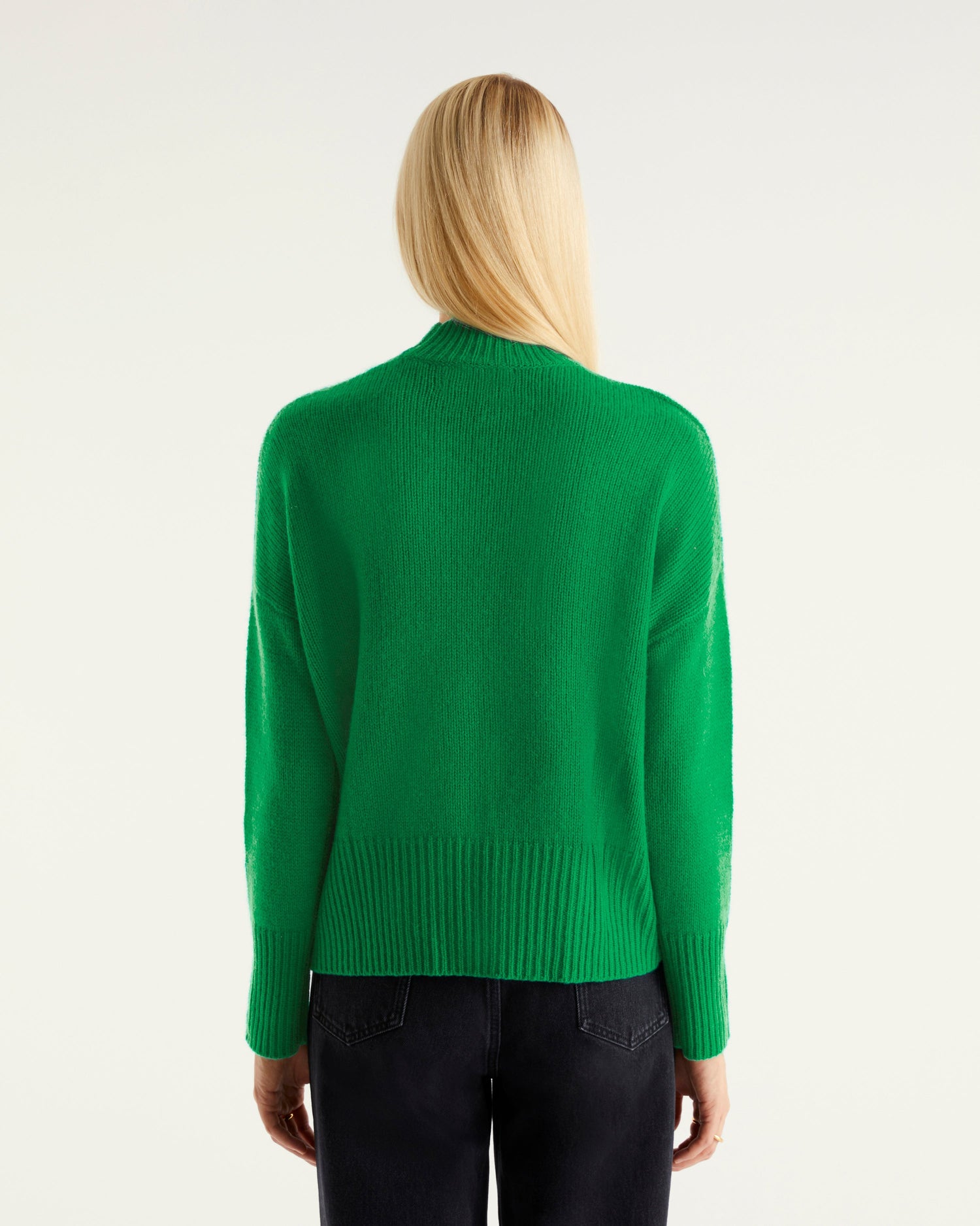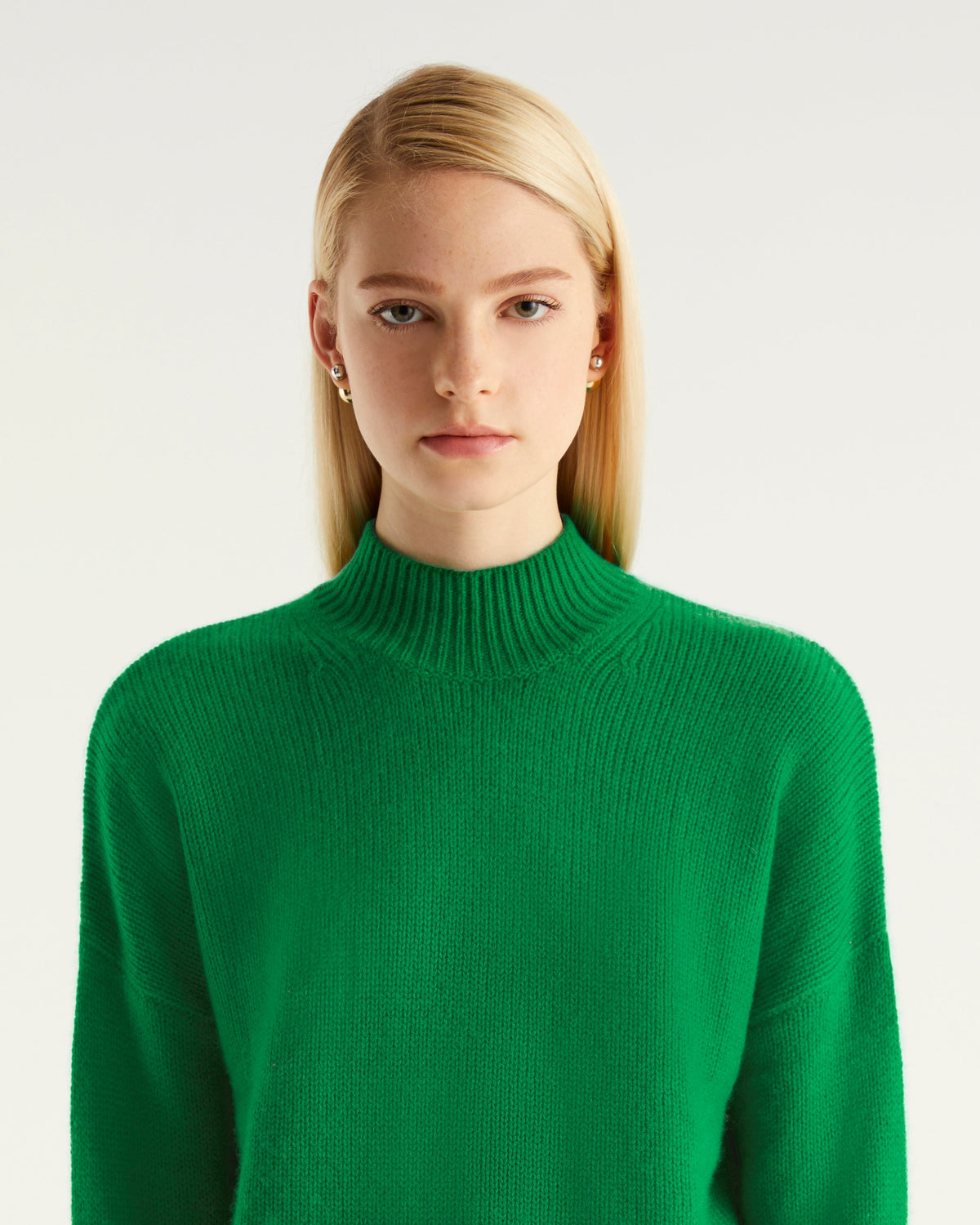 Sweater Col Montant Oversize 6 Fils - 100% Cachemire - Winter green
