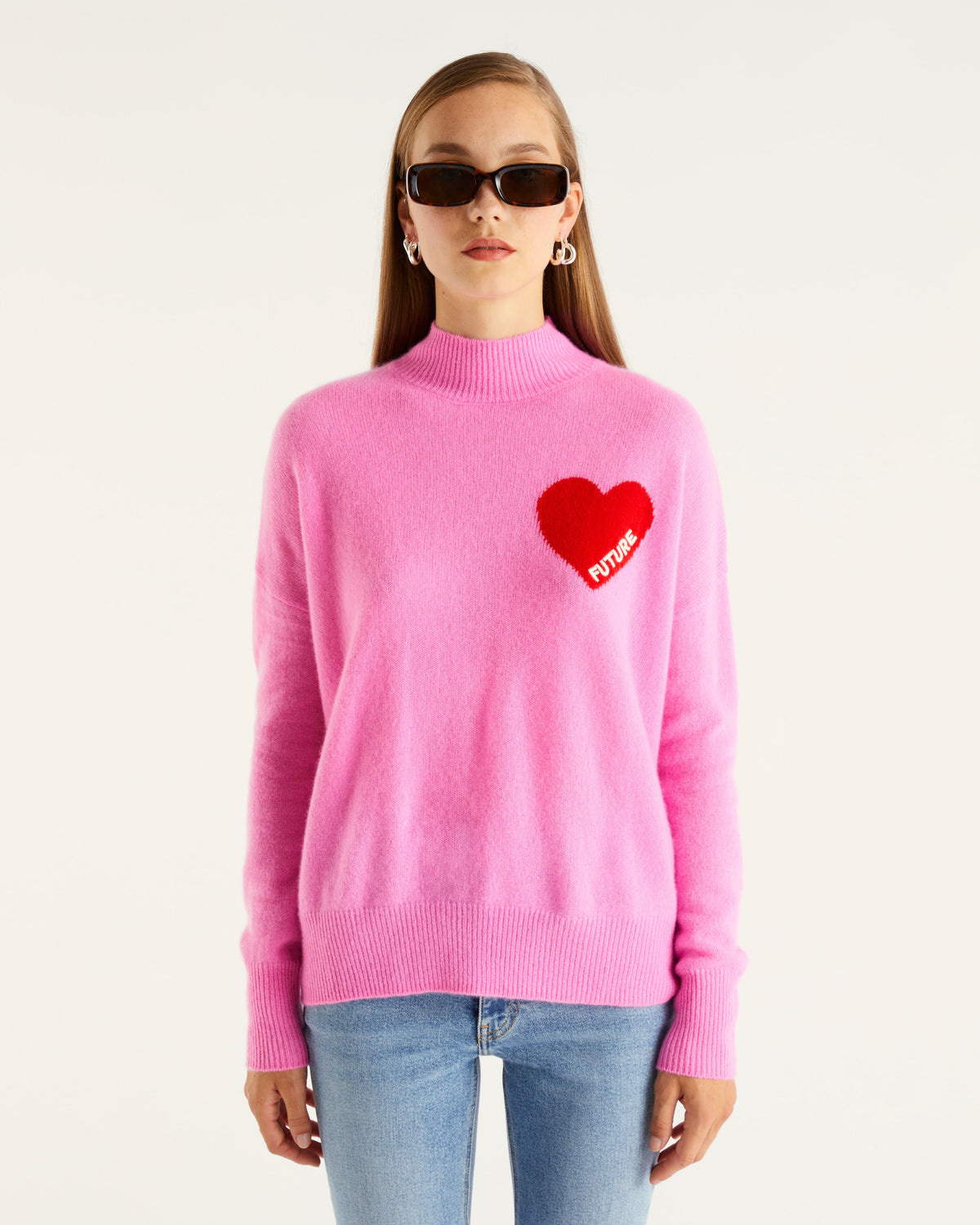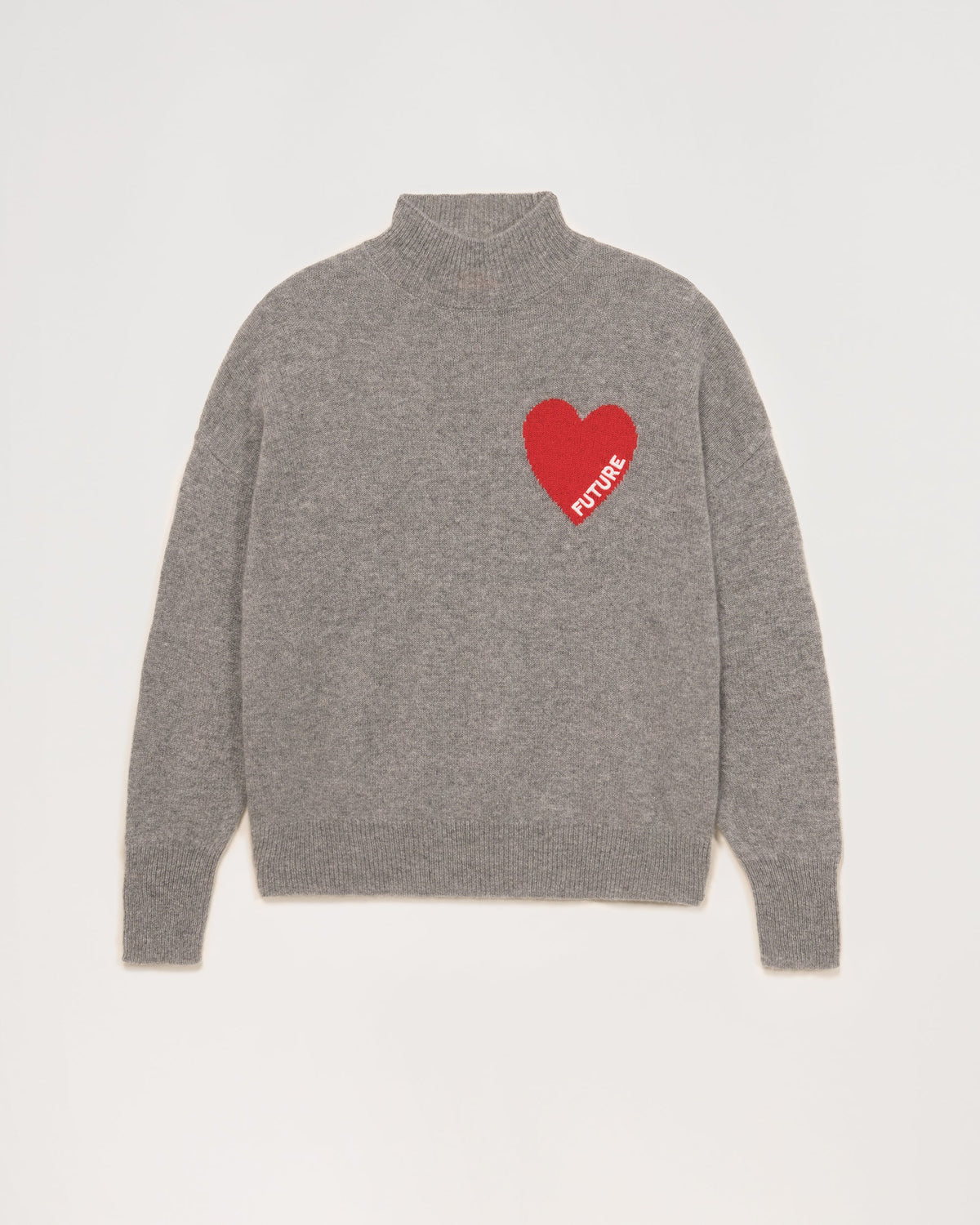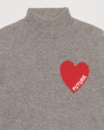 Sweater Col Montant Oversize Future Cœur 2 Fils - 100% Cachemire - Gris chine fonc