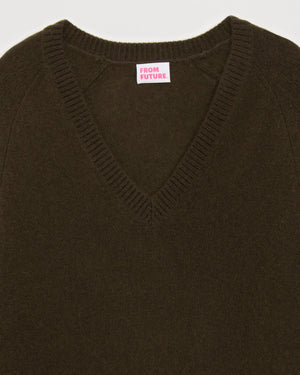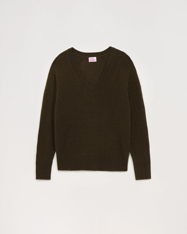 Sweater Col V Oversize Light - 100% Cachemire - Chocolat