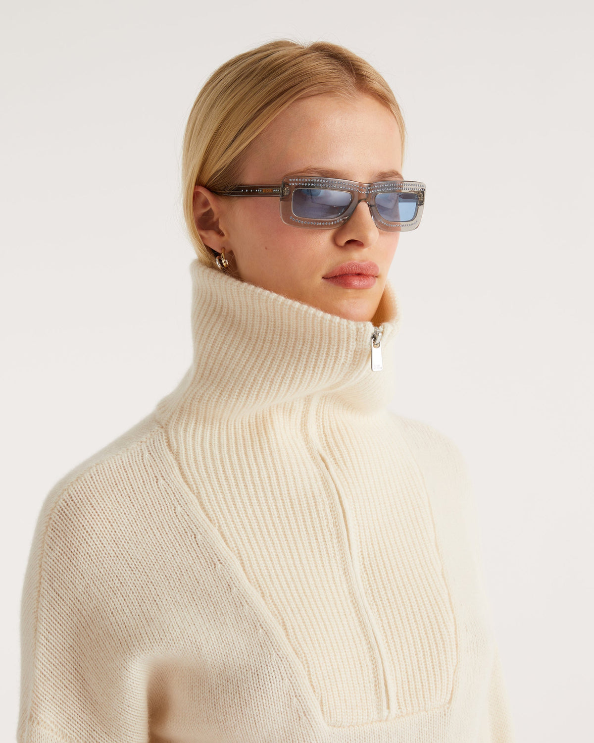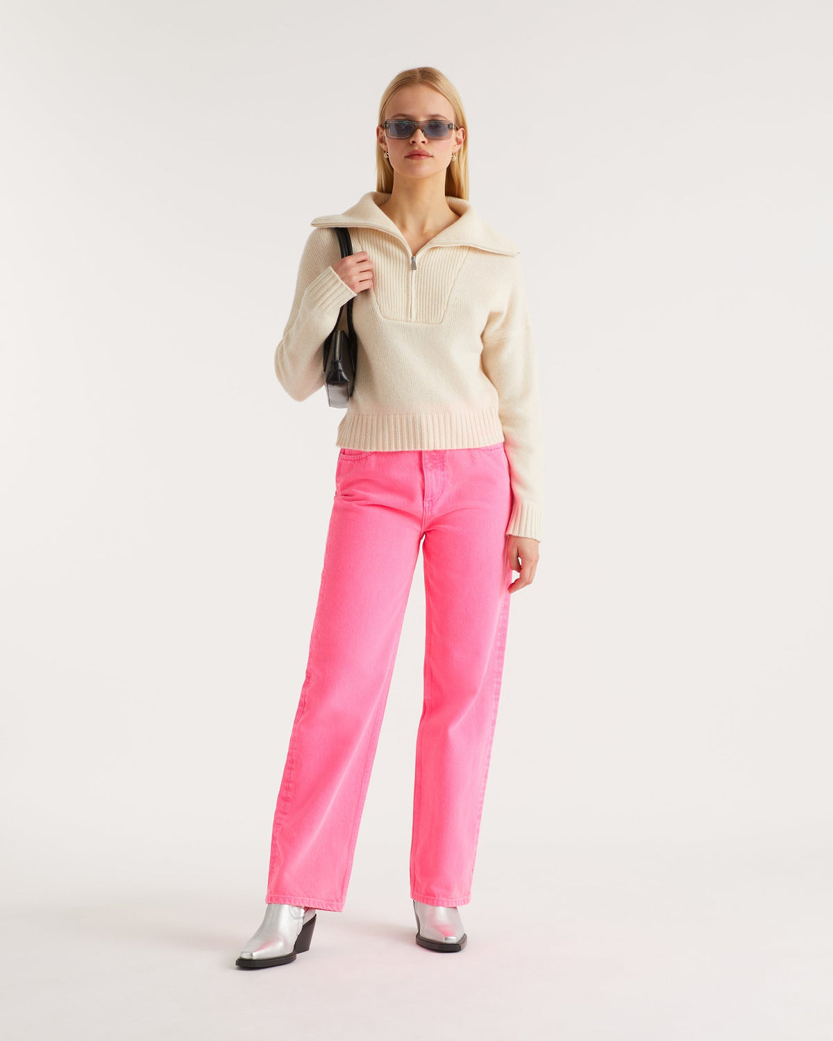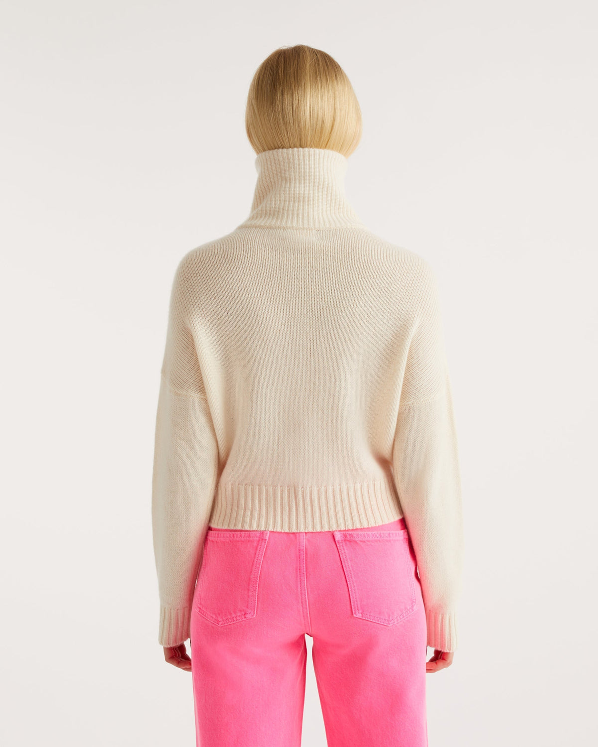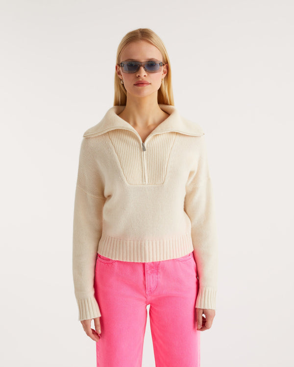 Sweater Pull Col Camionneur Zippe Oversize Court - Cachemire - Ecru