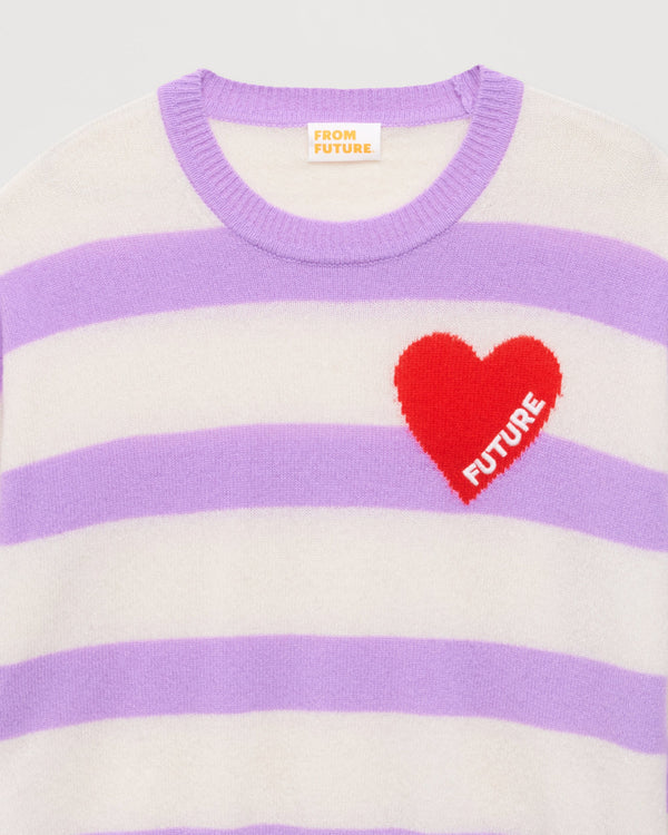 Sweater Pull Col Rond A Rayures Coeur From Future - Cachemire - Holiday lilac
