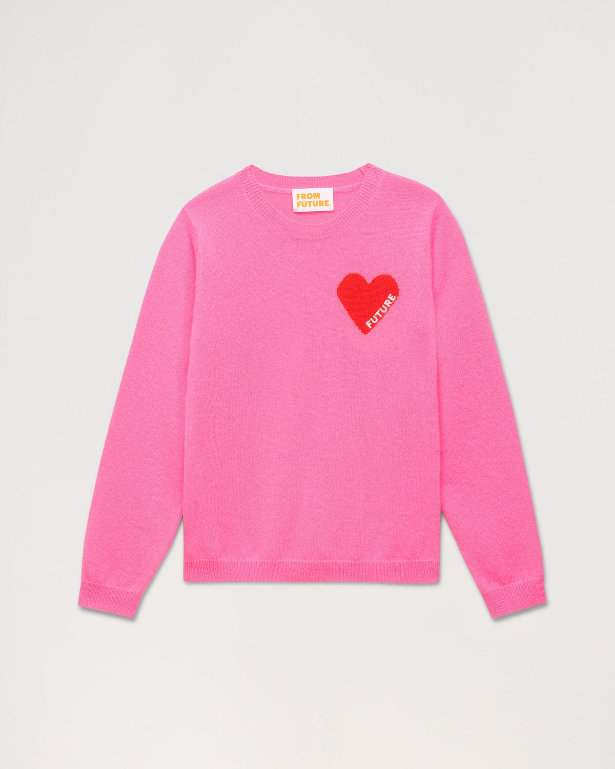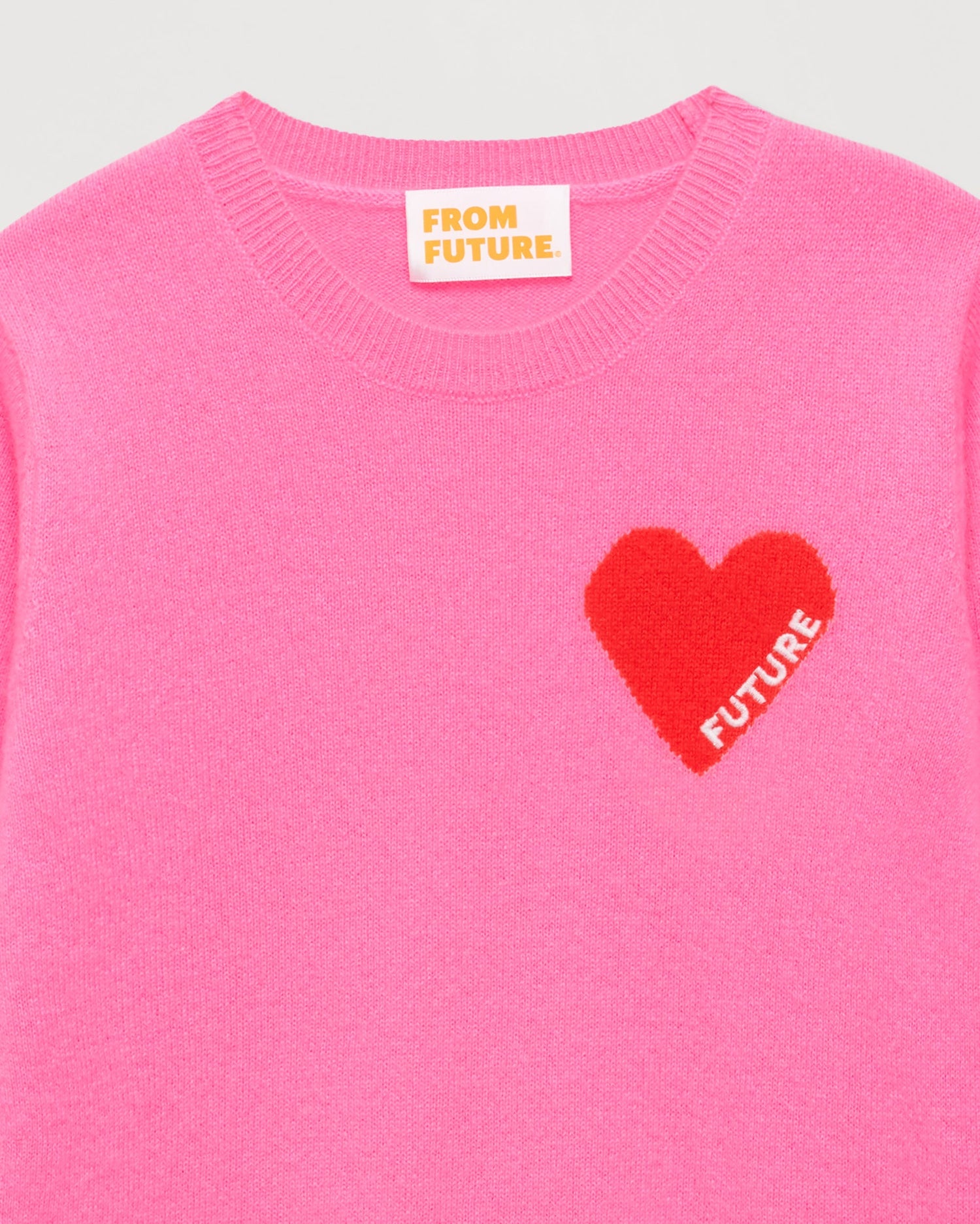 Sweater Pull Col Rond Coeur Broderie Future - Cachemire - Party pink