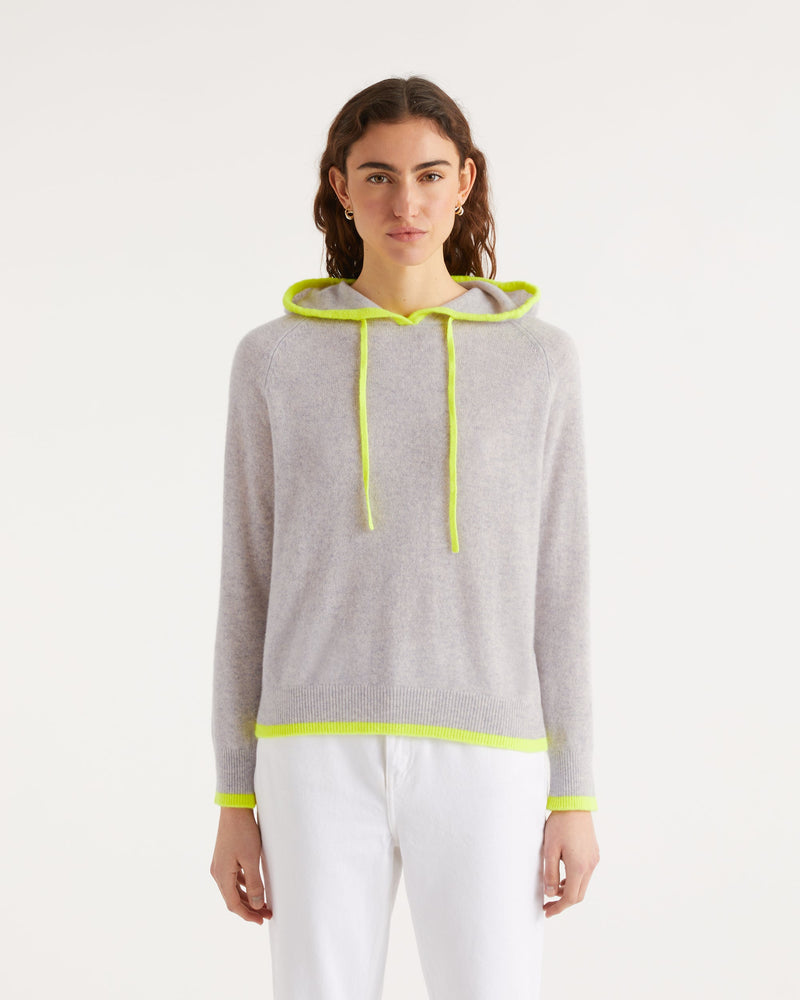 Pull Hoodie Oversize Liserets Contrastes - Cachemire - Gris chine clai