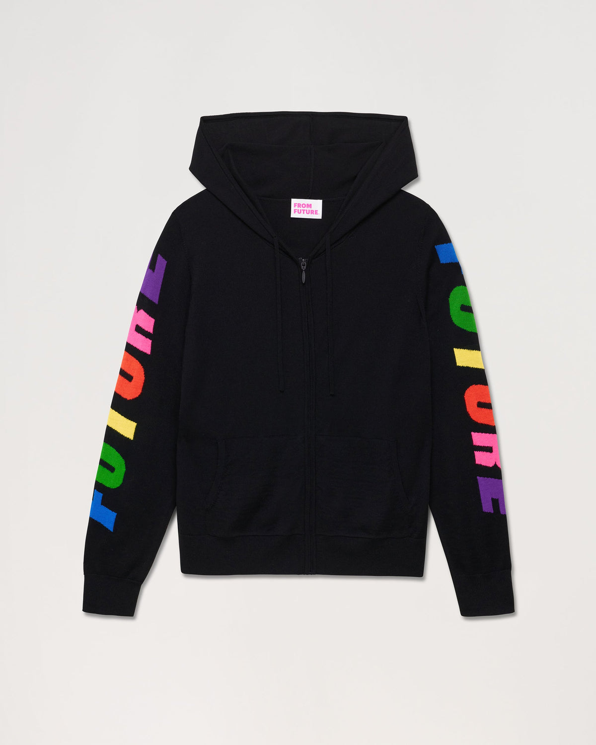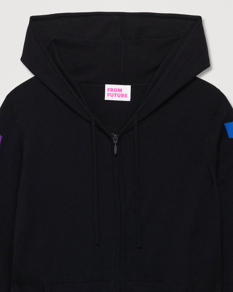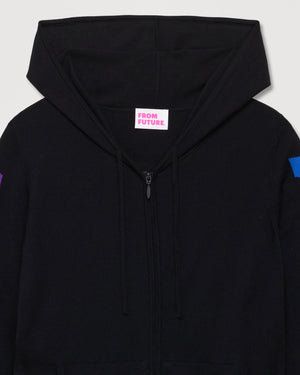 Pull Hoodie Zippe Future Multico Manches - Laine Mérinos - Noir