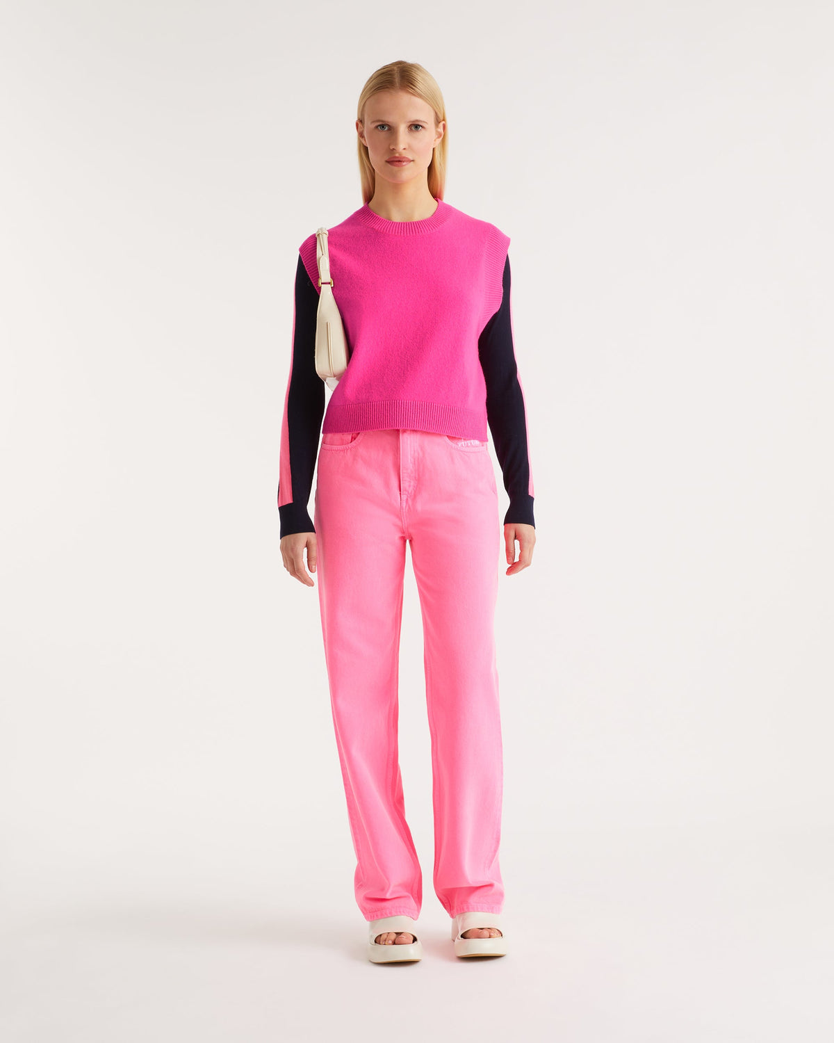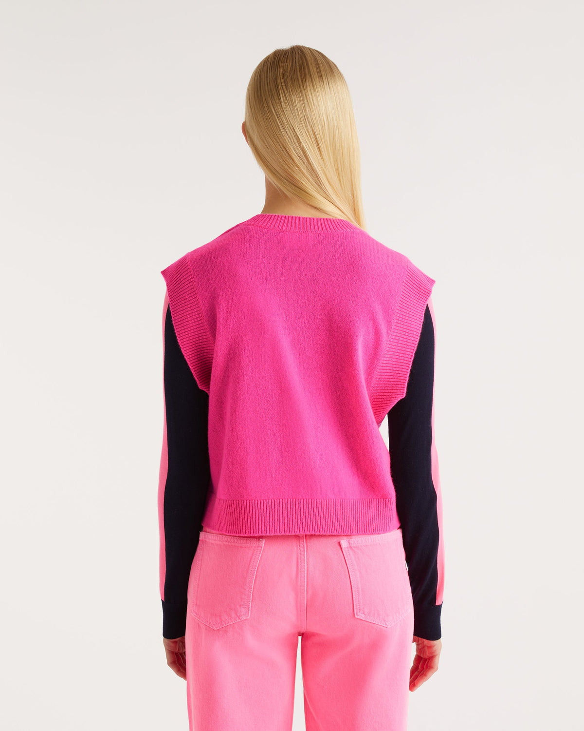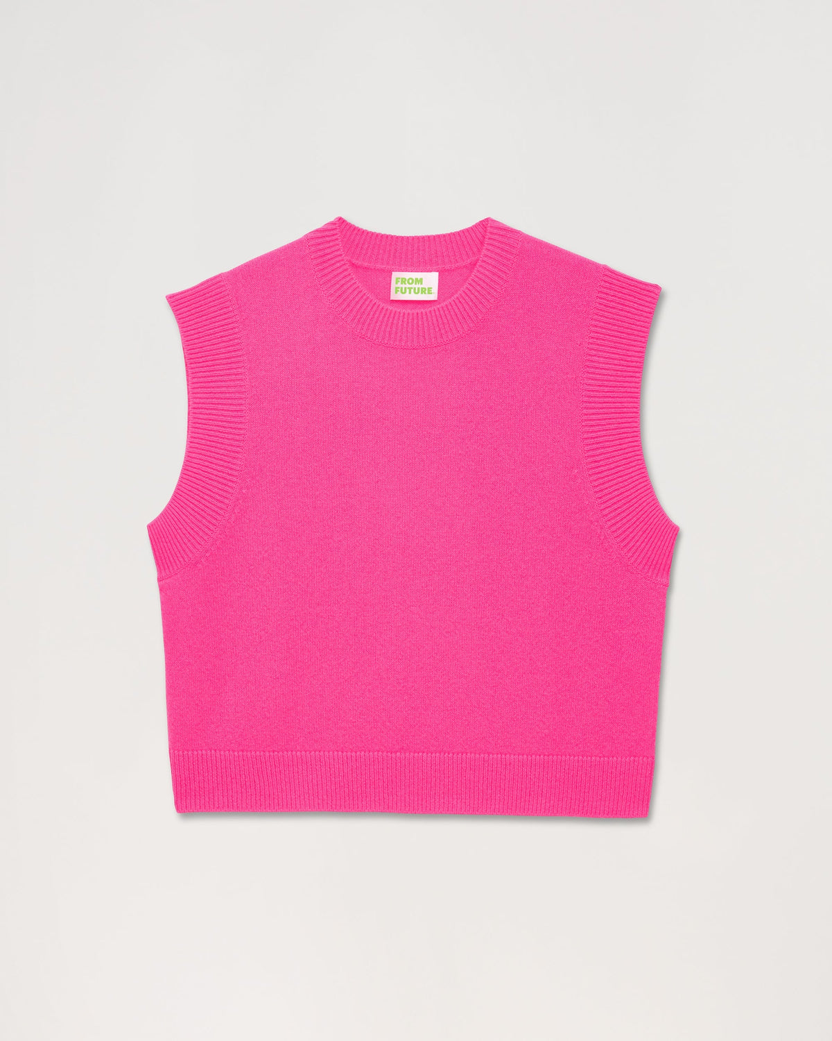Sweater Pull Sans Manche Col Rond Uni Light - Cachemire - Rose fluo