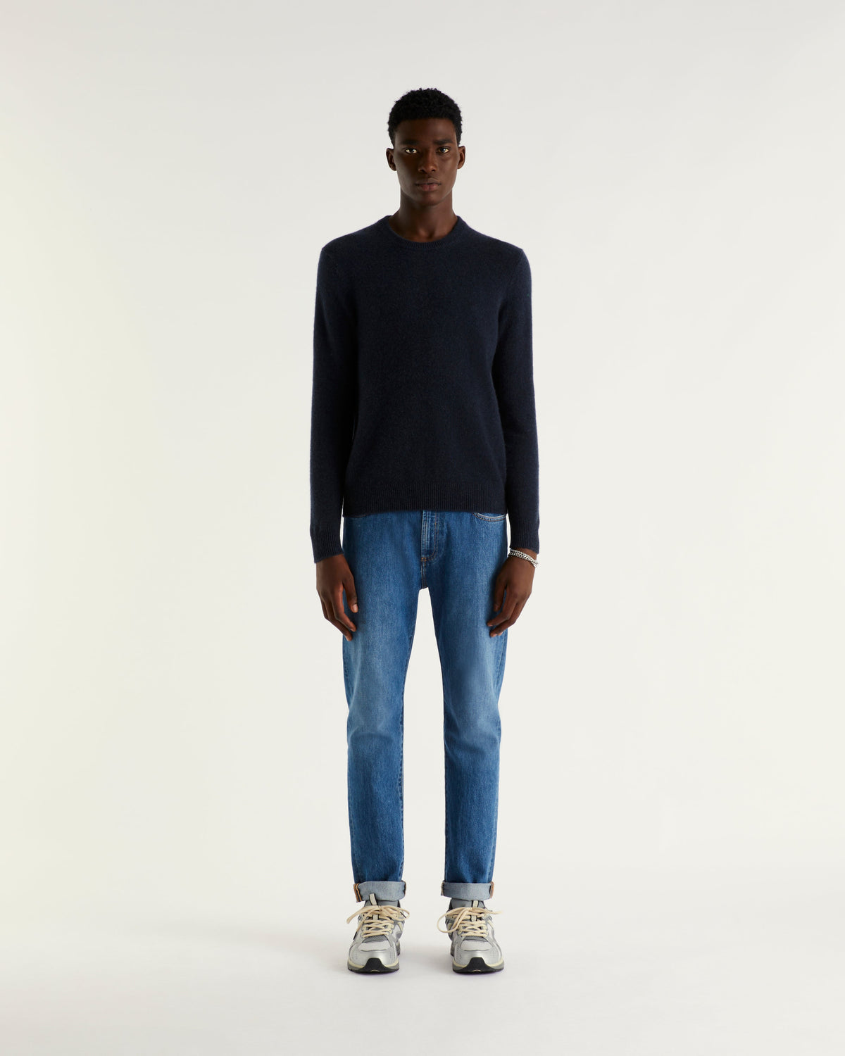 4 -thread round neck - 100% Cachemire - Bleu chine