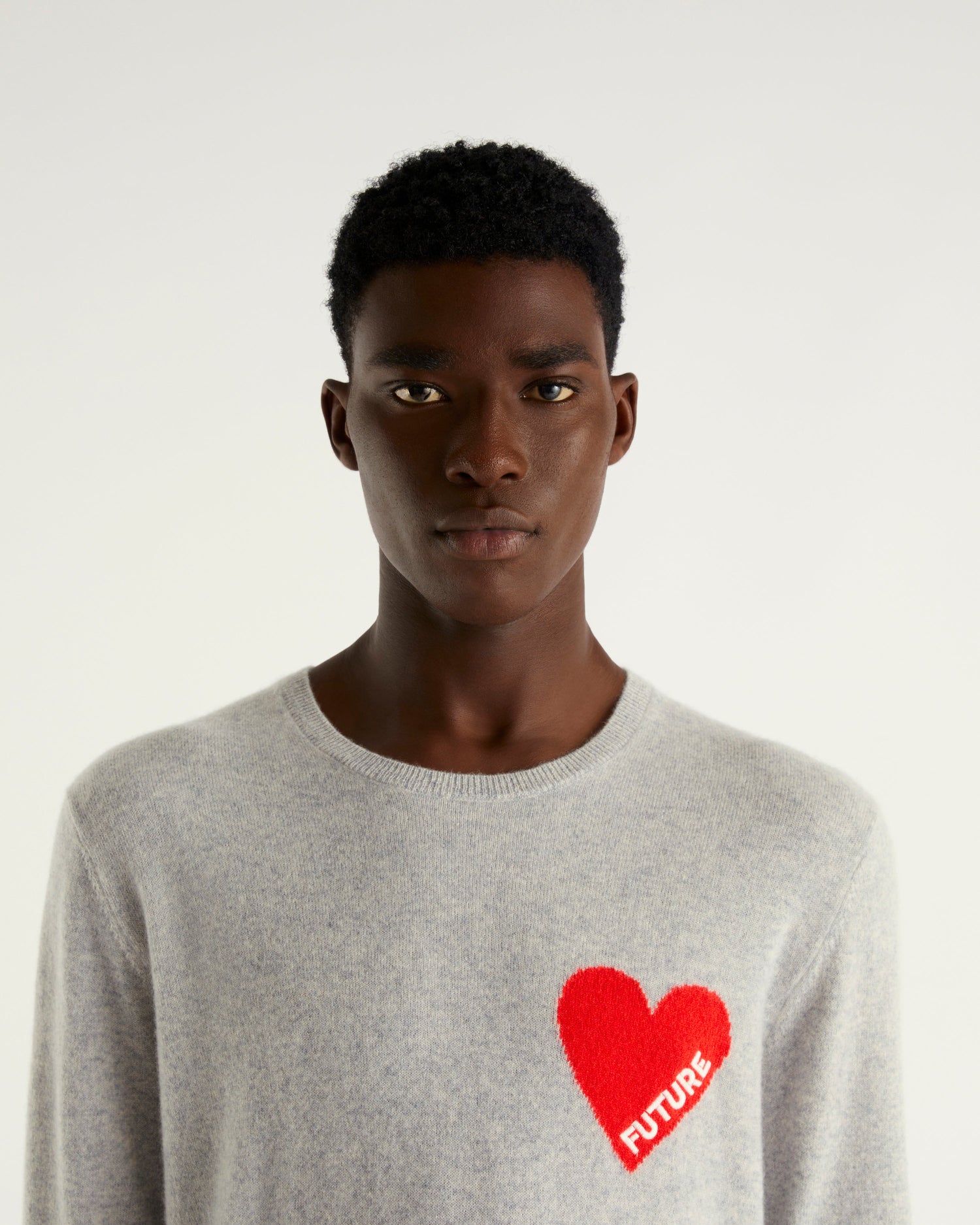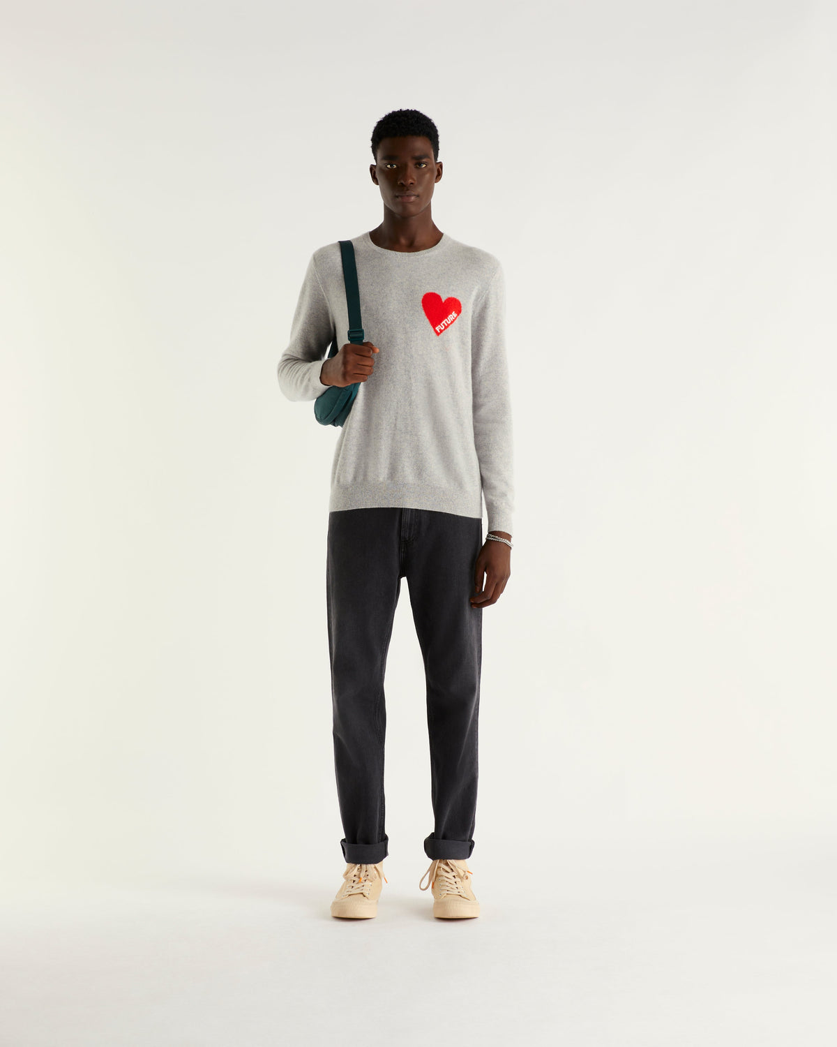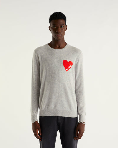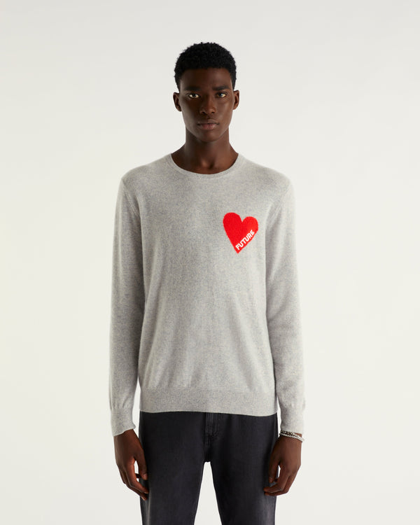 Sweater Col Rond Future Cœur 2 Fils - 100% Cachemire - Gris chine clai