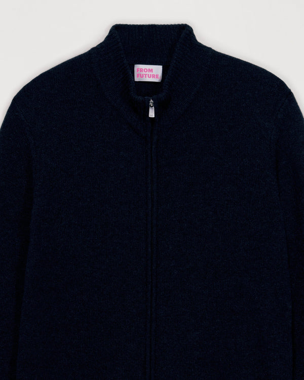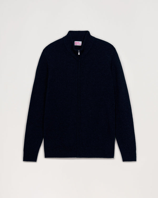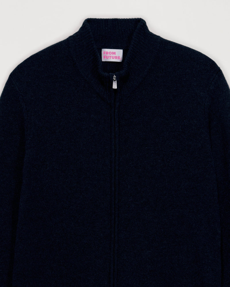4 -thread zipped vest - 100% Cachemire - Bleu chine