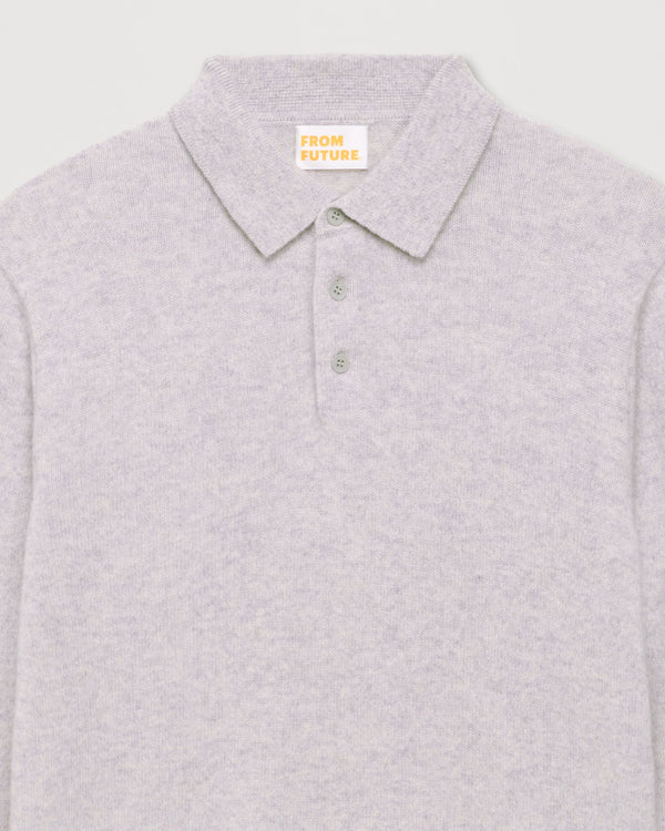 Sweater Pull Col Polo Uni Light - Cachemire - Gris chine clai