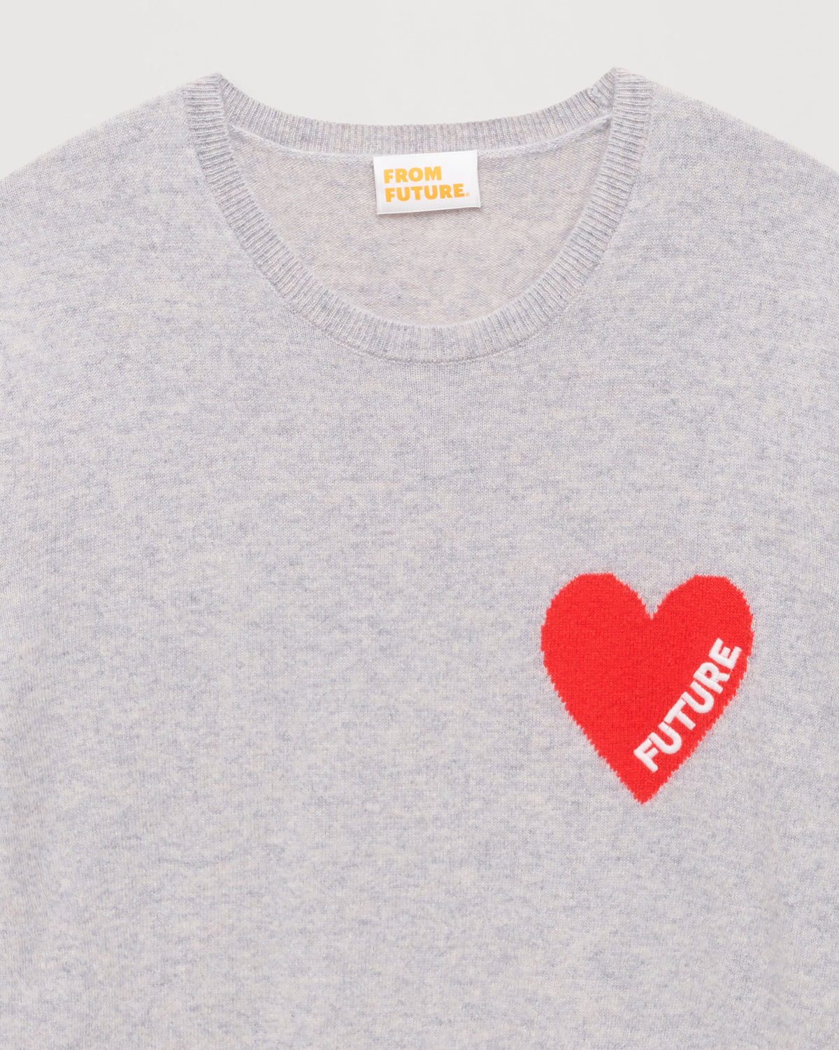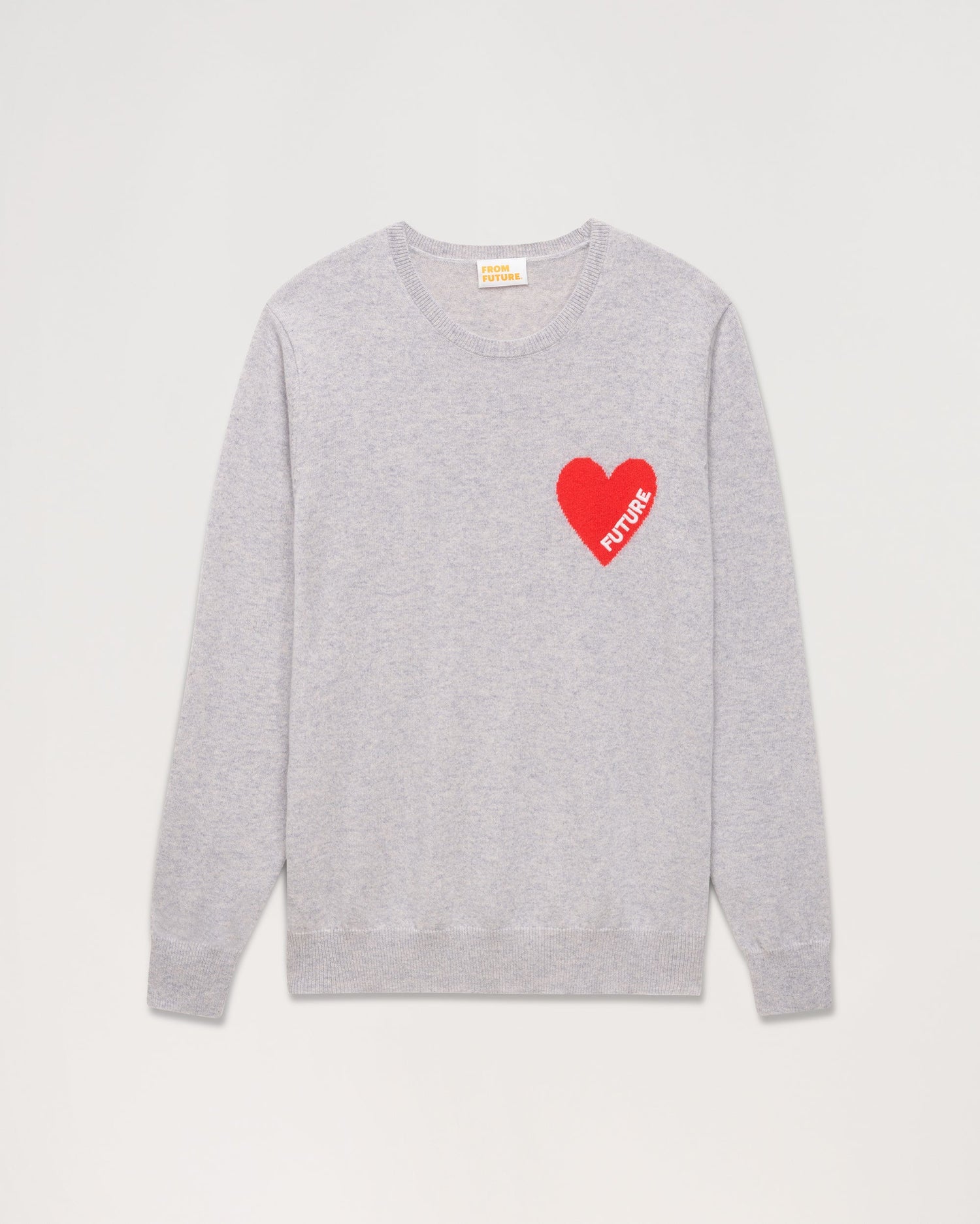 Sweater Pull Col Rond Coeur Broderie Future - Cachemire - Gris chine clai