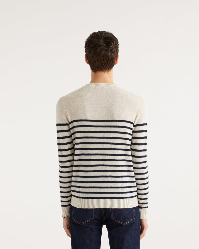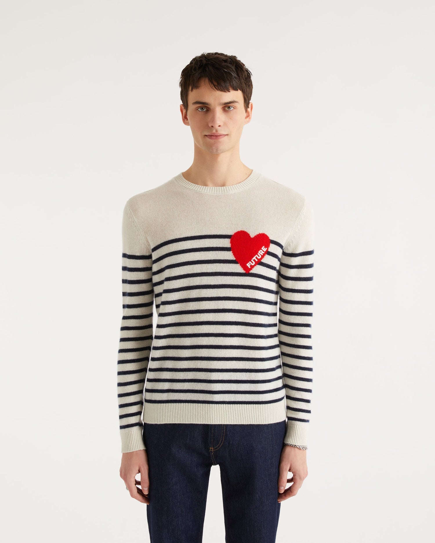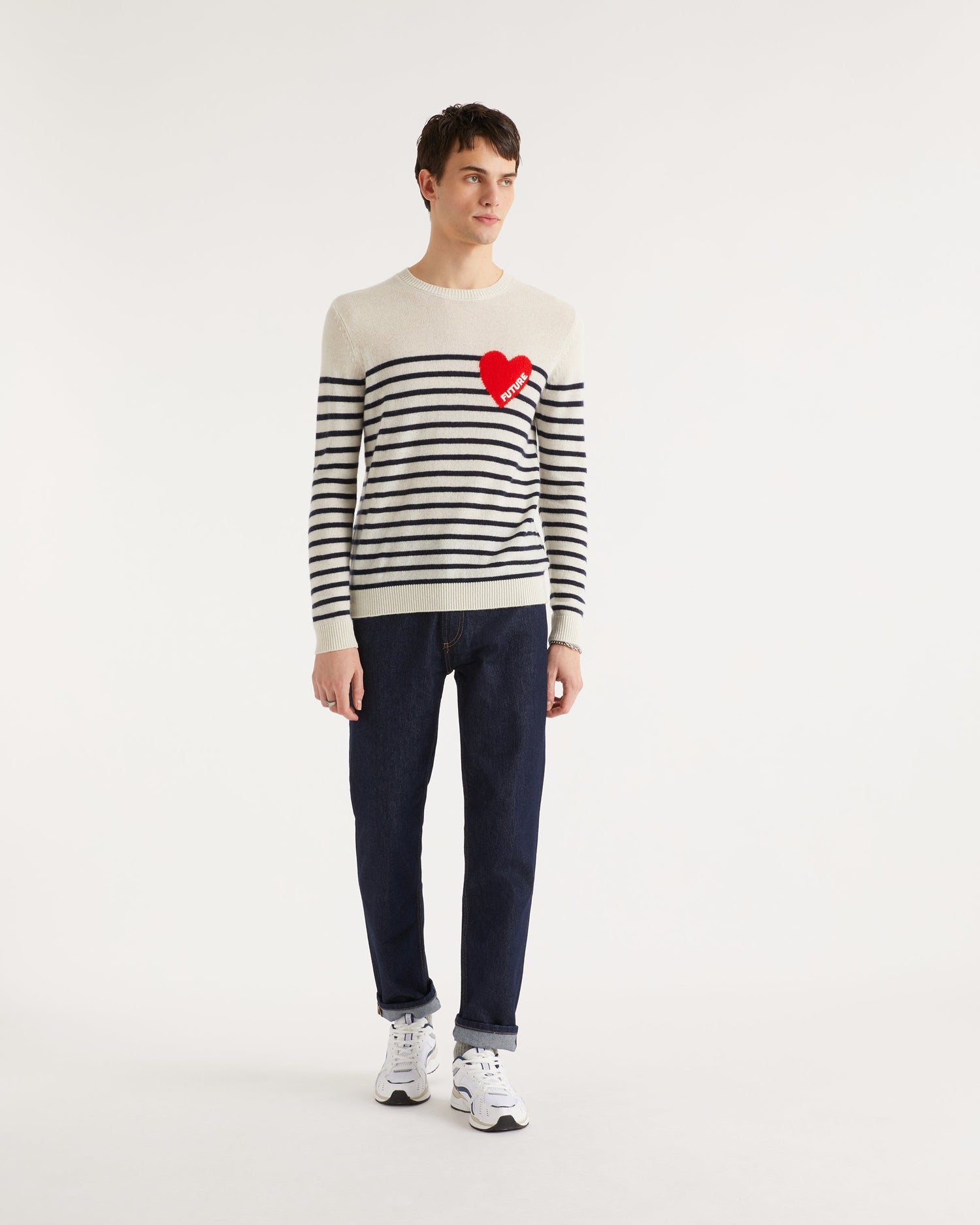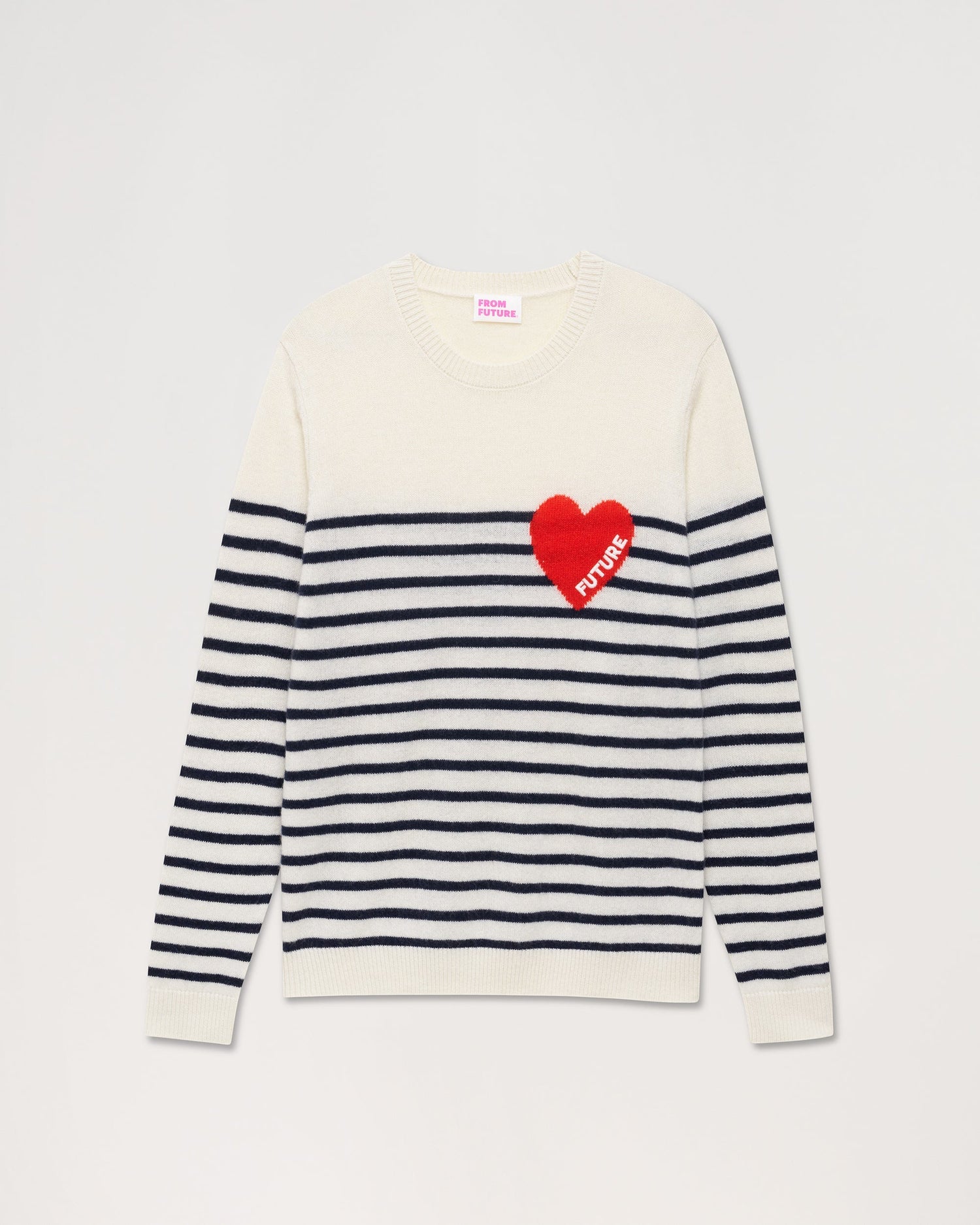 Sweater Pull Col Rond Mariniere à Coeur - Cachemire - Ecru