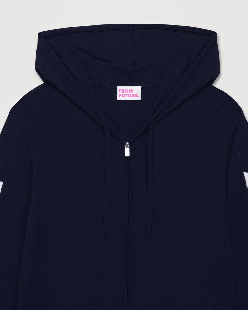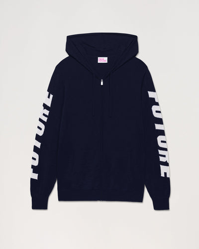 Pull Hoodie Zippe A Poches Manches Future - Laine Mérinos - Navy