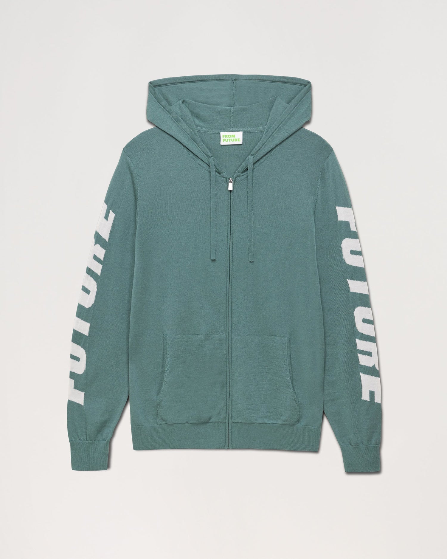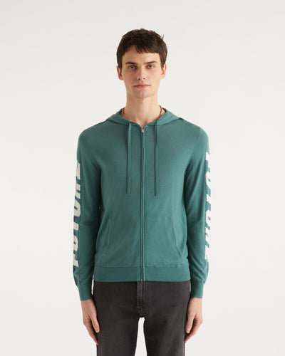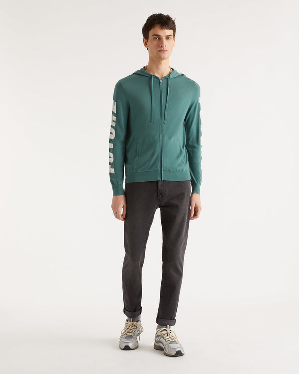 Pull Hoodie Zippe A Poches Manches Future - Laine Mérinos - Washed green