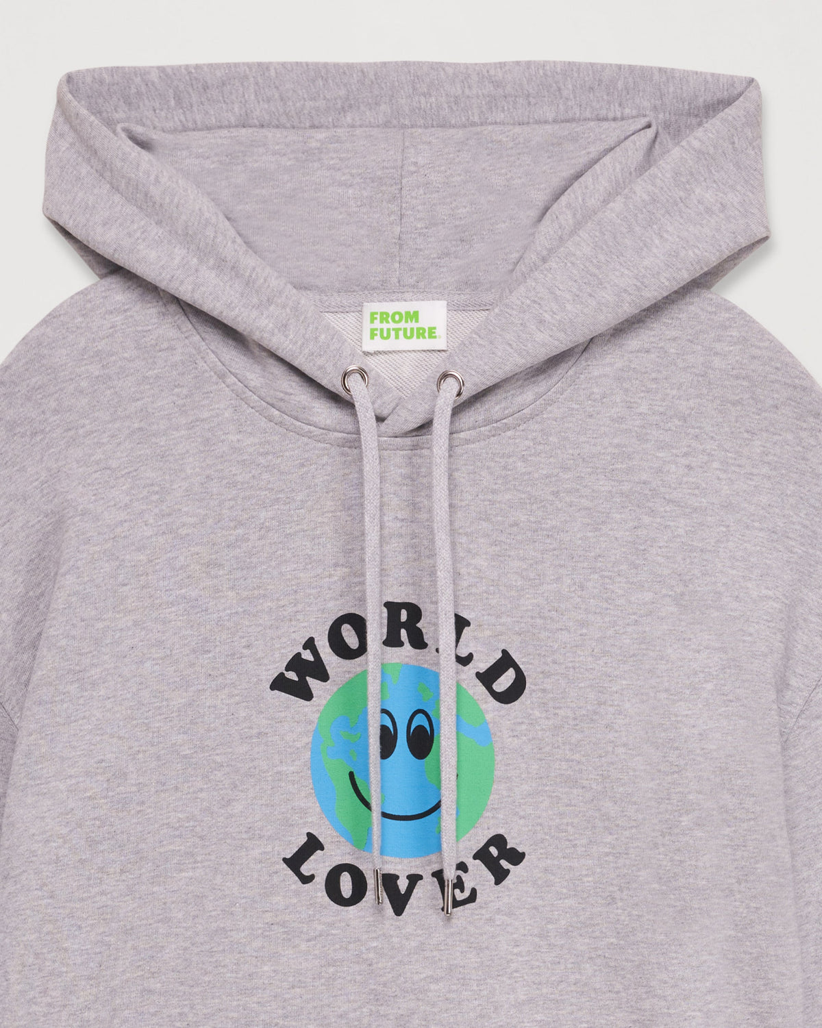Sweatshirt Hoodie World Lover - Coton Organique - Gris chine clai