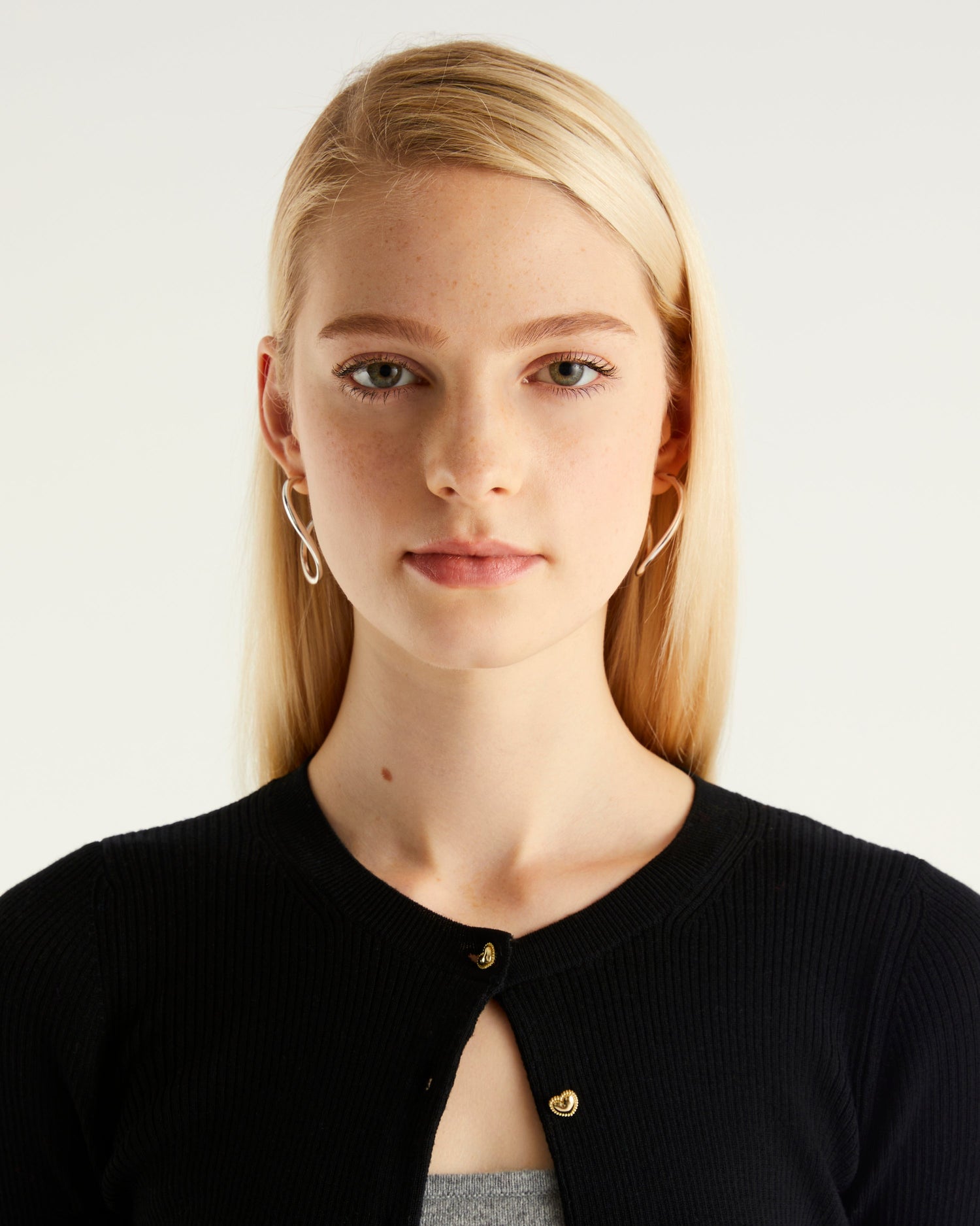 Cardigan à Côtes Bouton Fantaisie 2 Fils - 100% Laine Mérinos - Noir