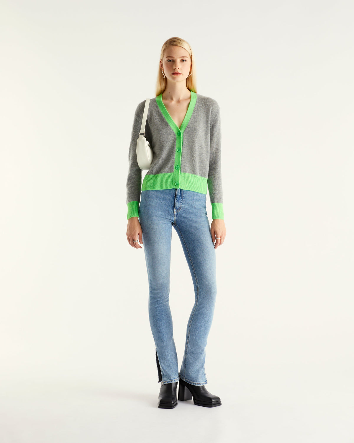 Cardigan Court À Bandes Contrastées 2 Fils