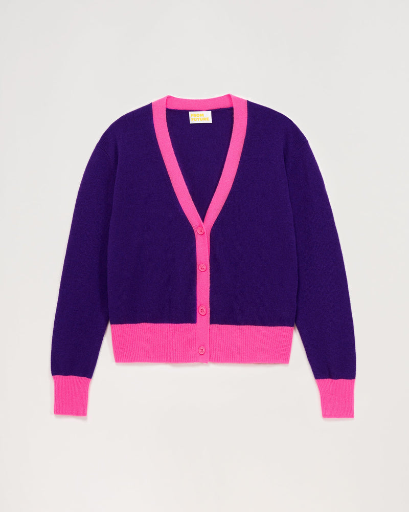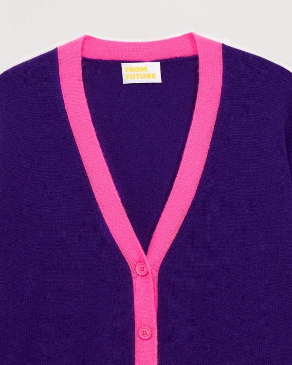 Cardigan Court À Bandes Contrastées 2 Fils - 100% Cachemire - Intense purple
