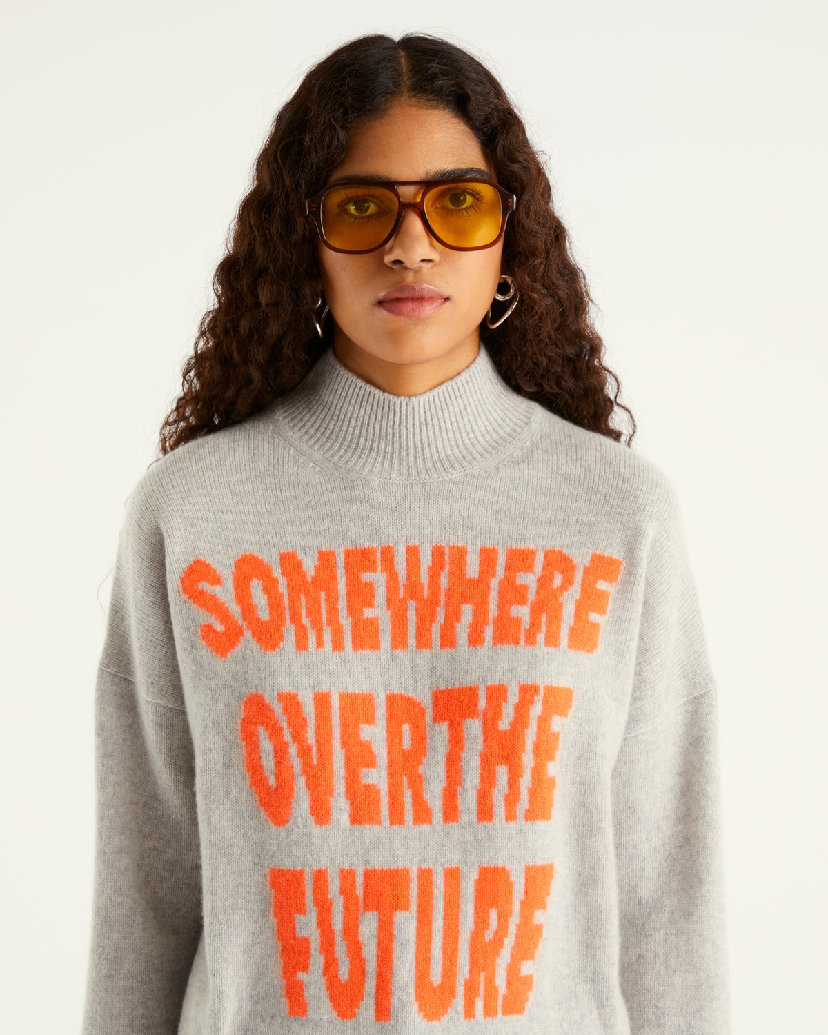 Sweater Col Montant Somewhere Over The Future 4 Fils - 100% Cachemire - Gris chine clai