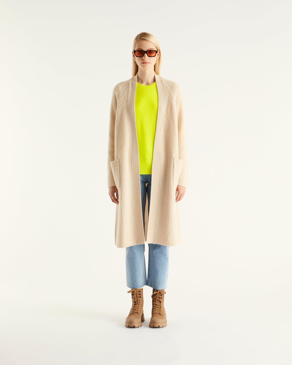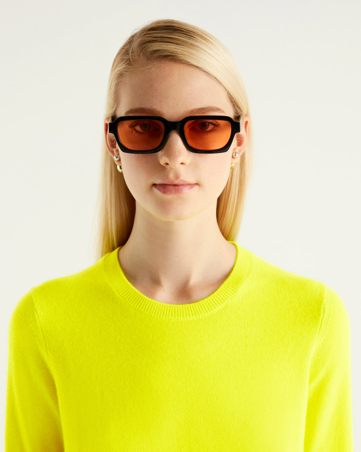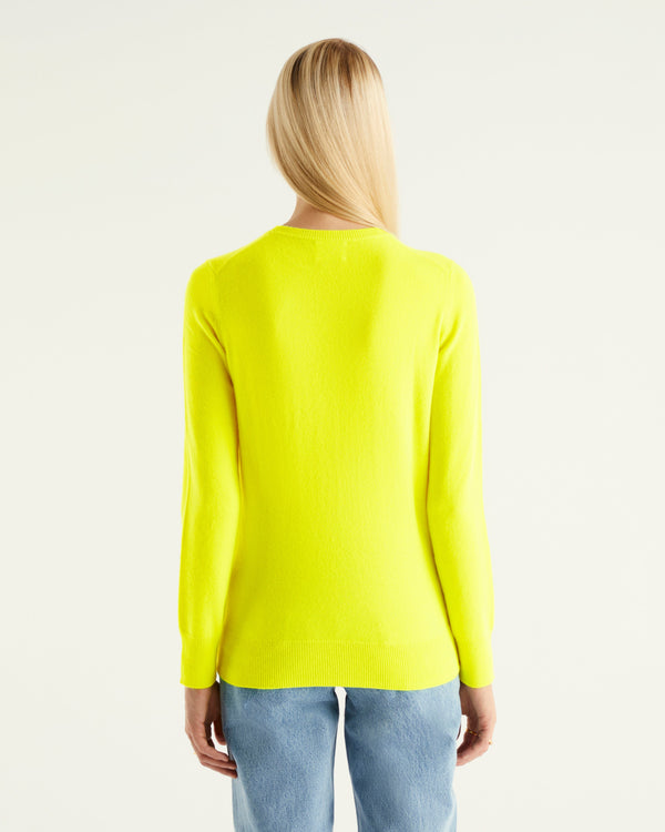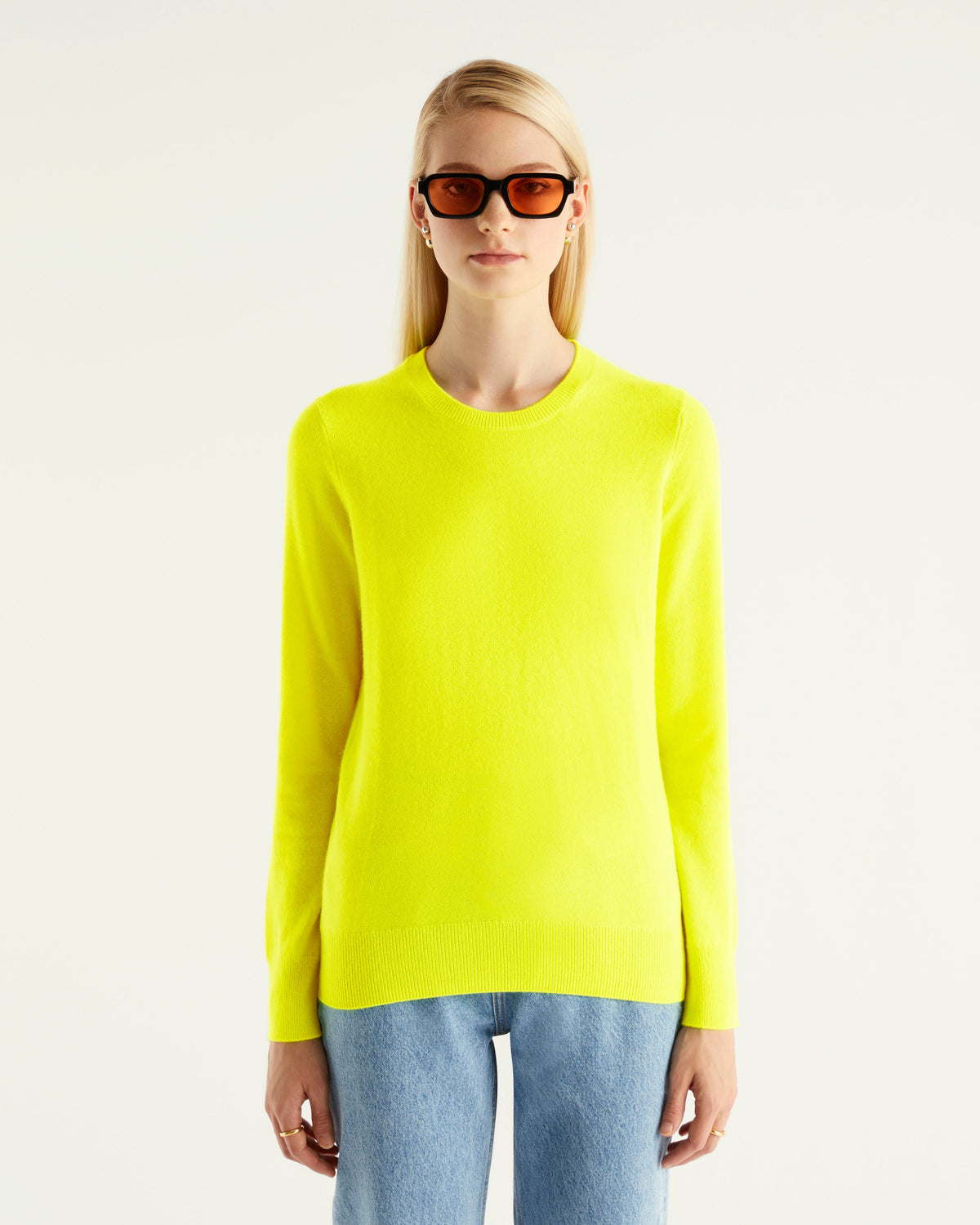 Sweater Col Rond 2 Fils - 100% Cachemire - Jaune fluo