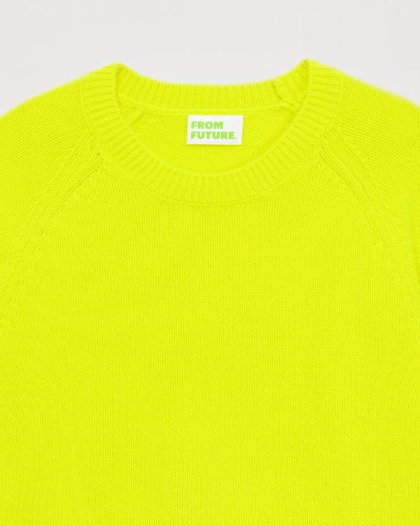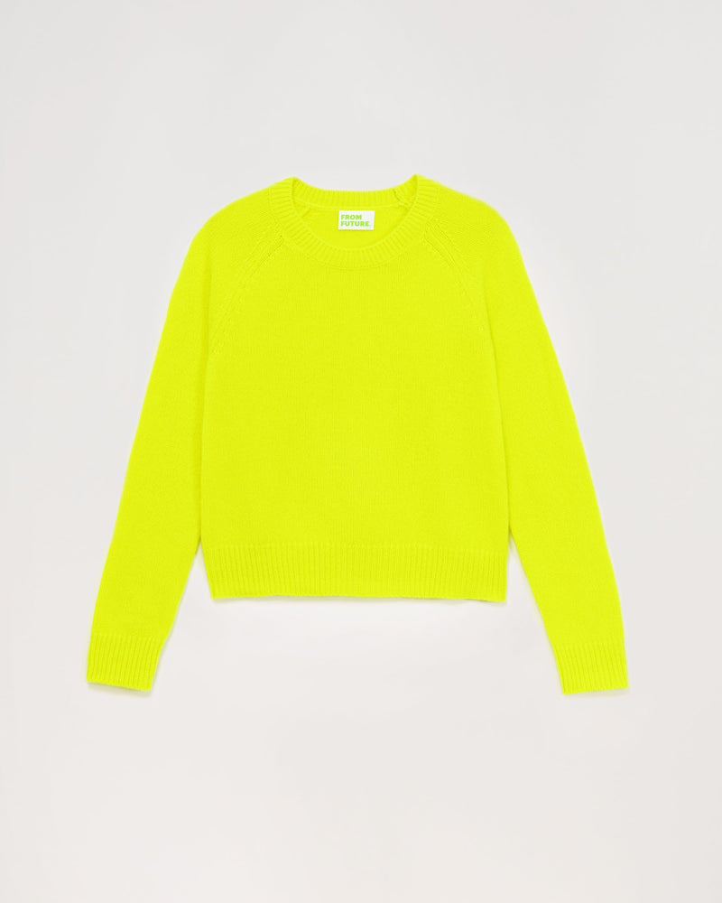 Short round neck 6 threads - 100% Cachemire - Jaune fluo