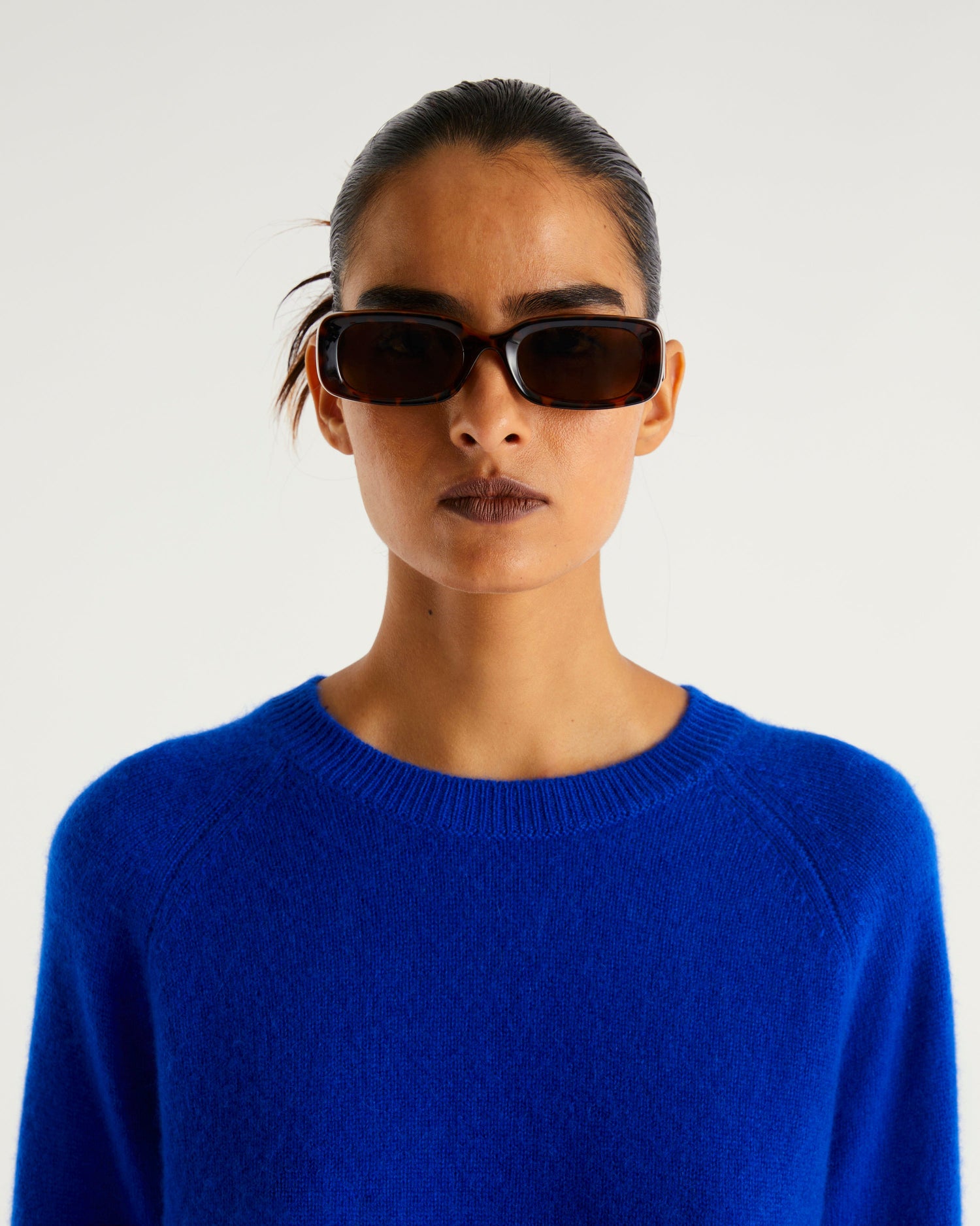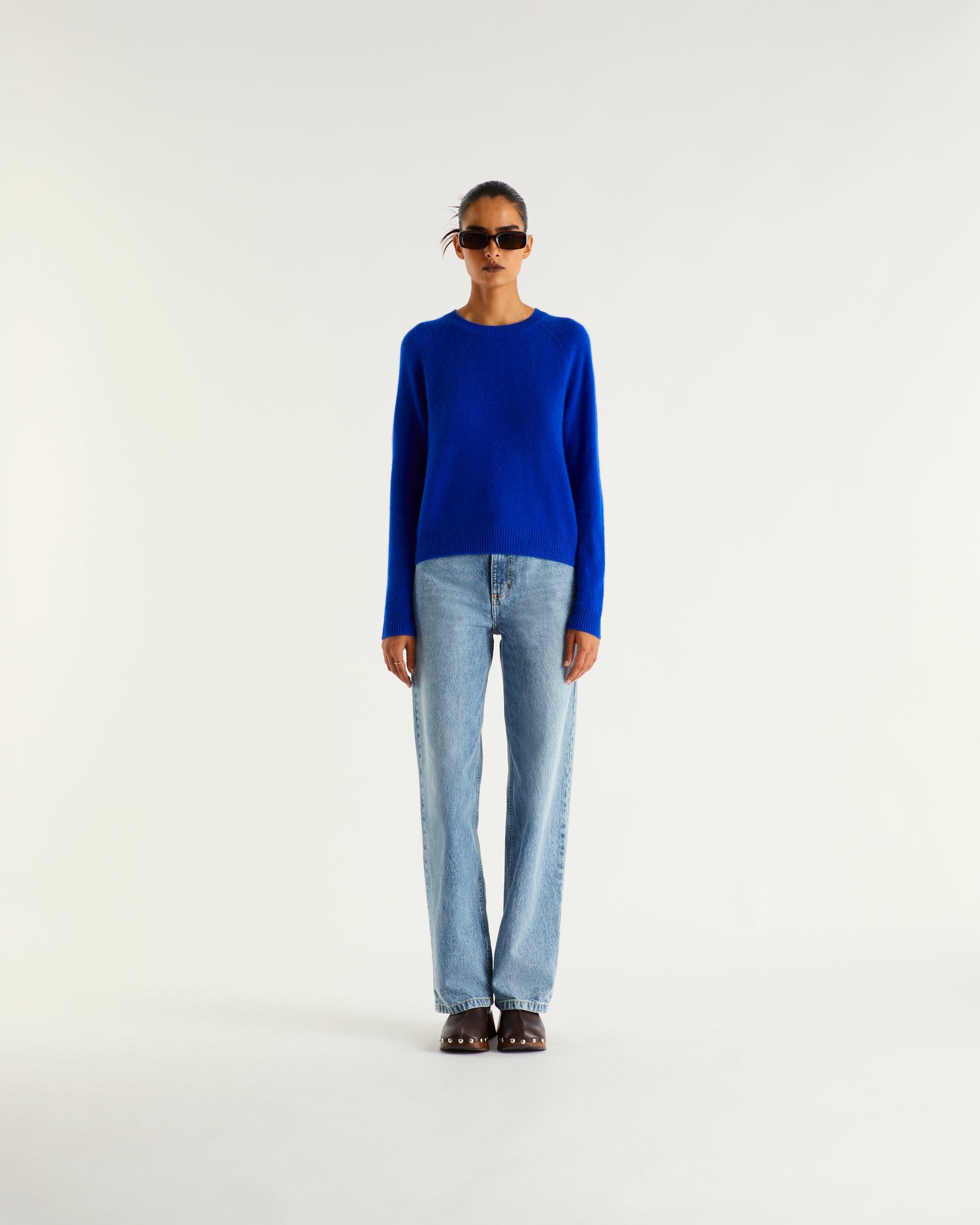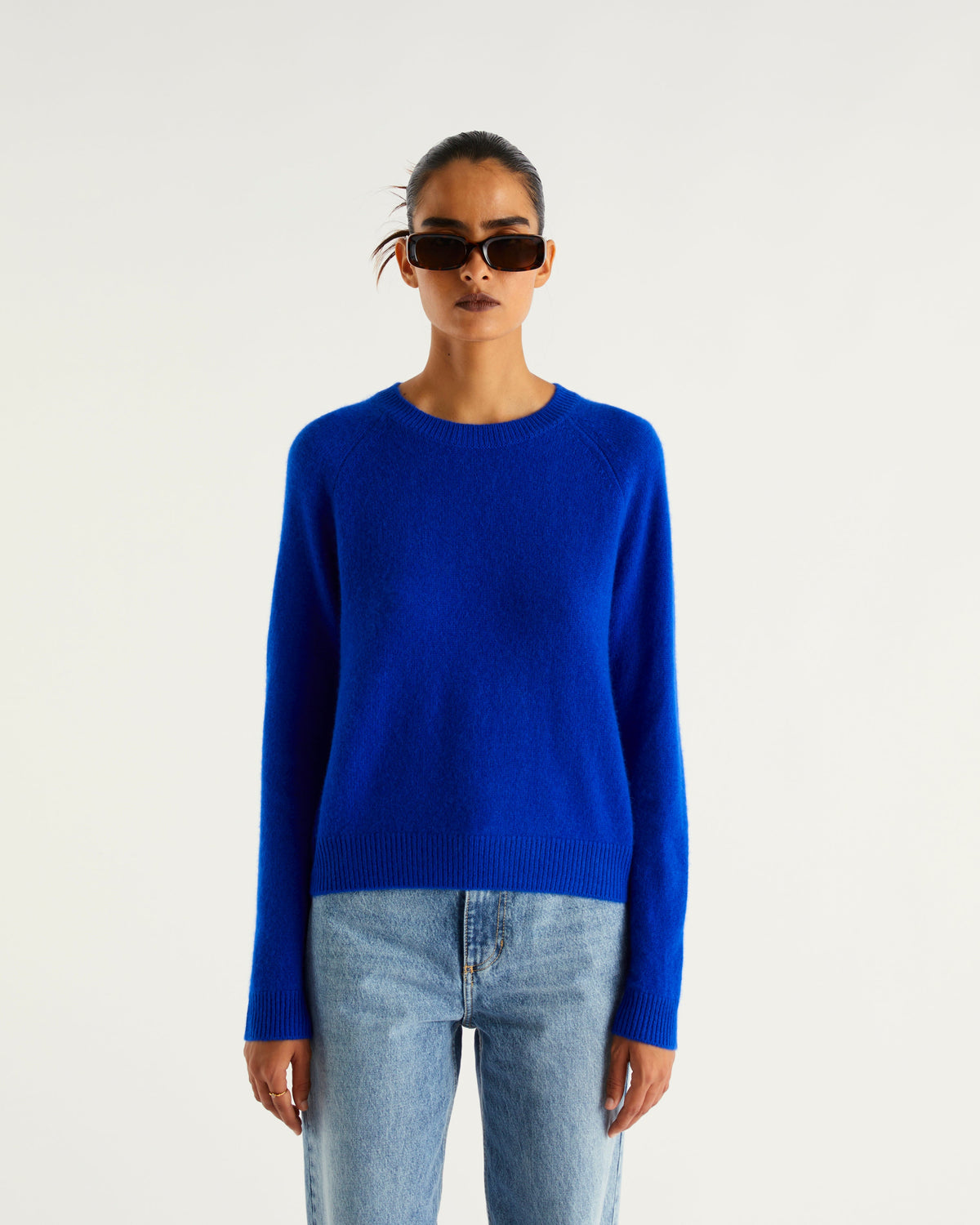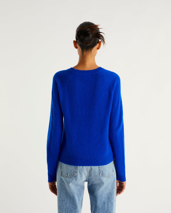 Sweater Col Rond Court Light - 100% Cachemire - Pop blue