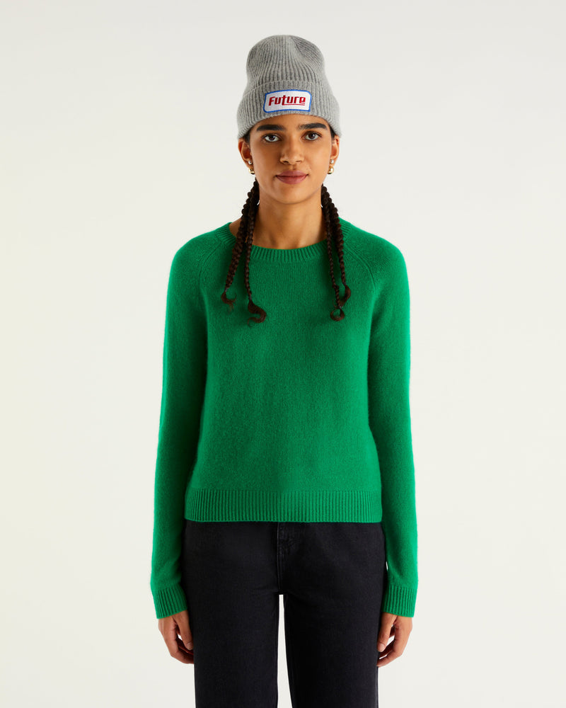 Light short round neck - 100% Cachemire - Vert gazon
