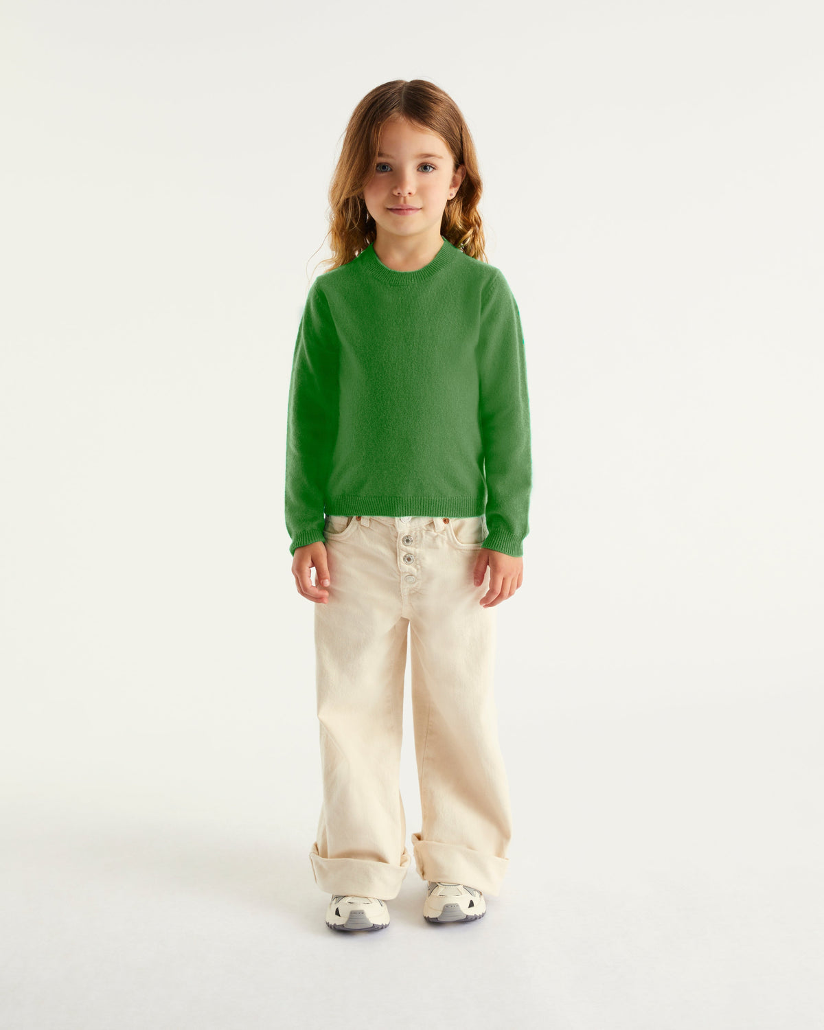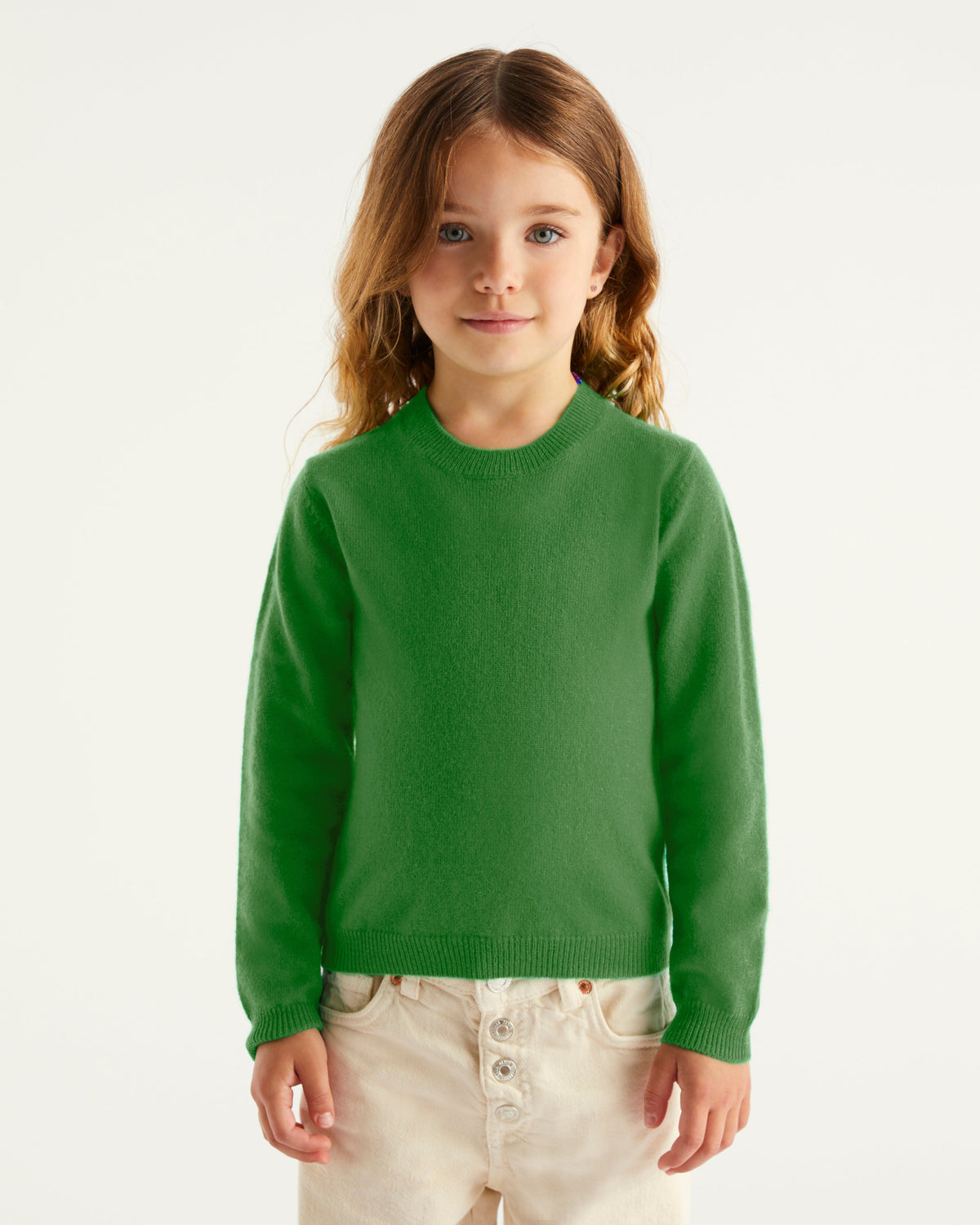 Sweater Col Rond Kids 2 Fils - 100% Cachemire - Vert gazon
