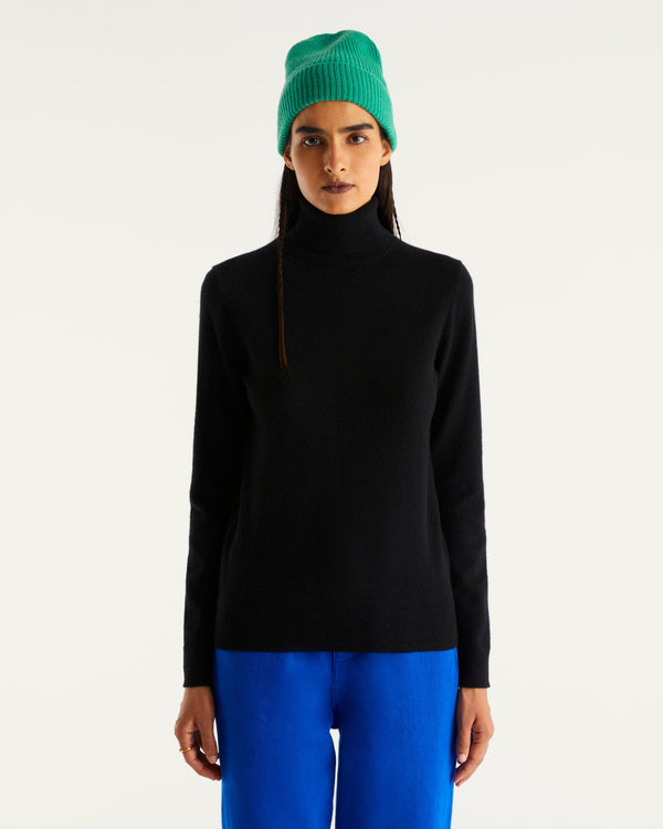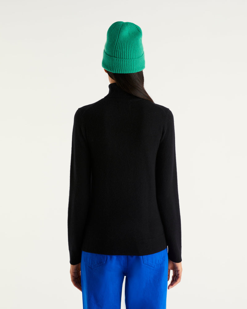 Sweater Col Roulé 2 Fils - 100% Cachemire - Noir