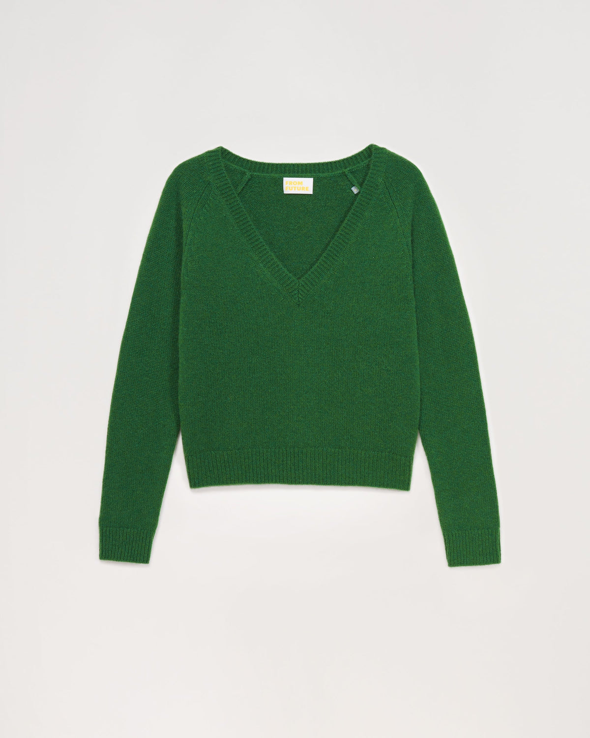 Short v collar 6 threads - 100% Cachemire - Vert sapin
