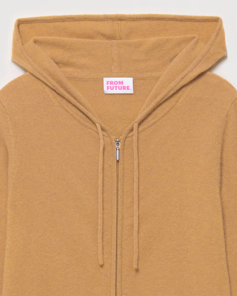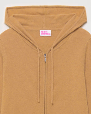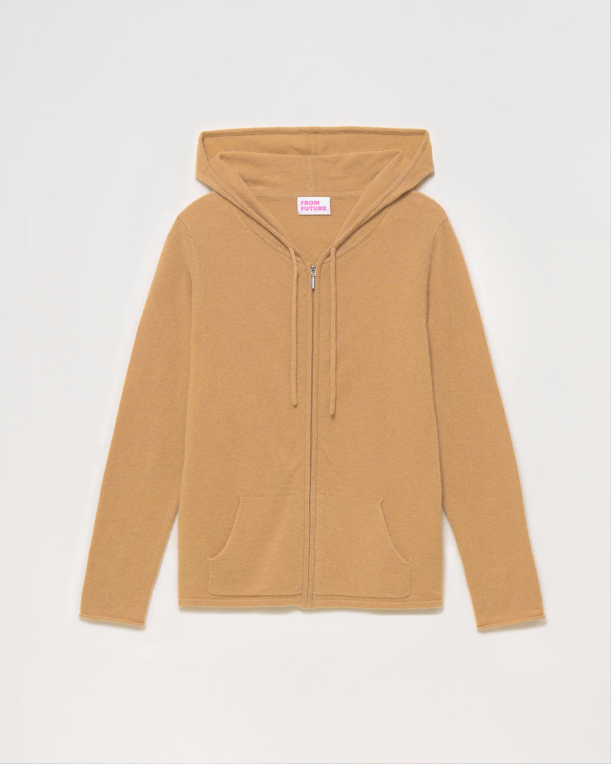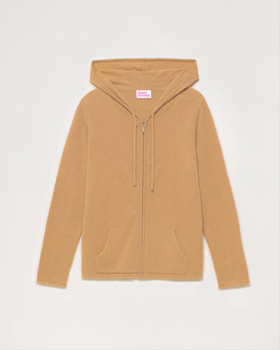 Hoodie Zippé 2 Fils - 100% Cachemire - Camel