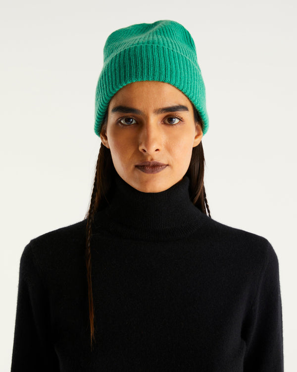 Sweater Small ribs - 100% Cachemire - Cold green