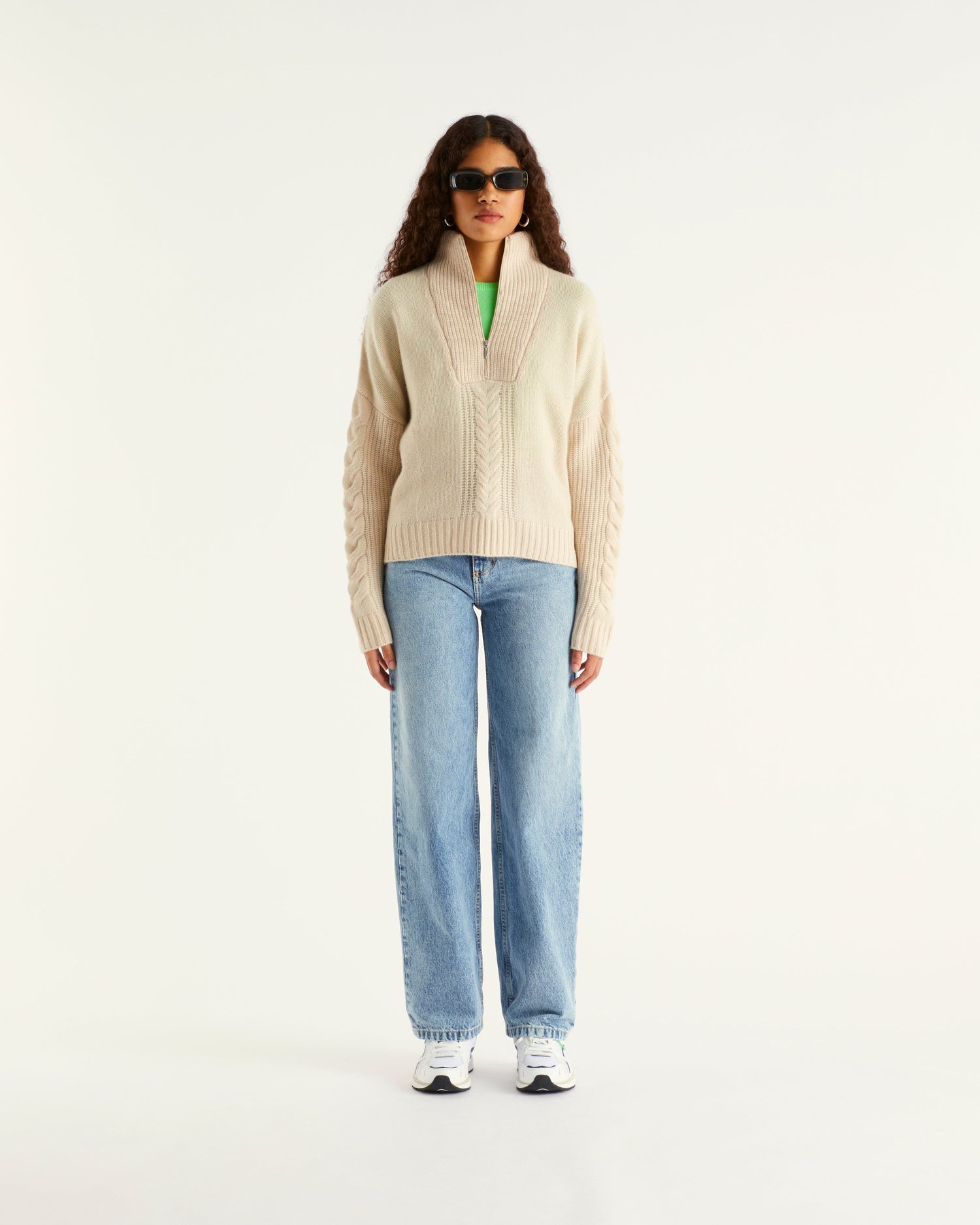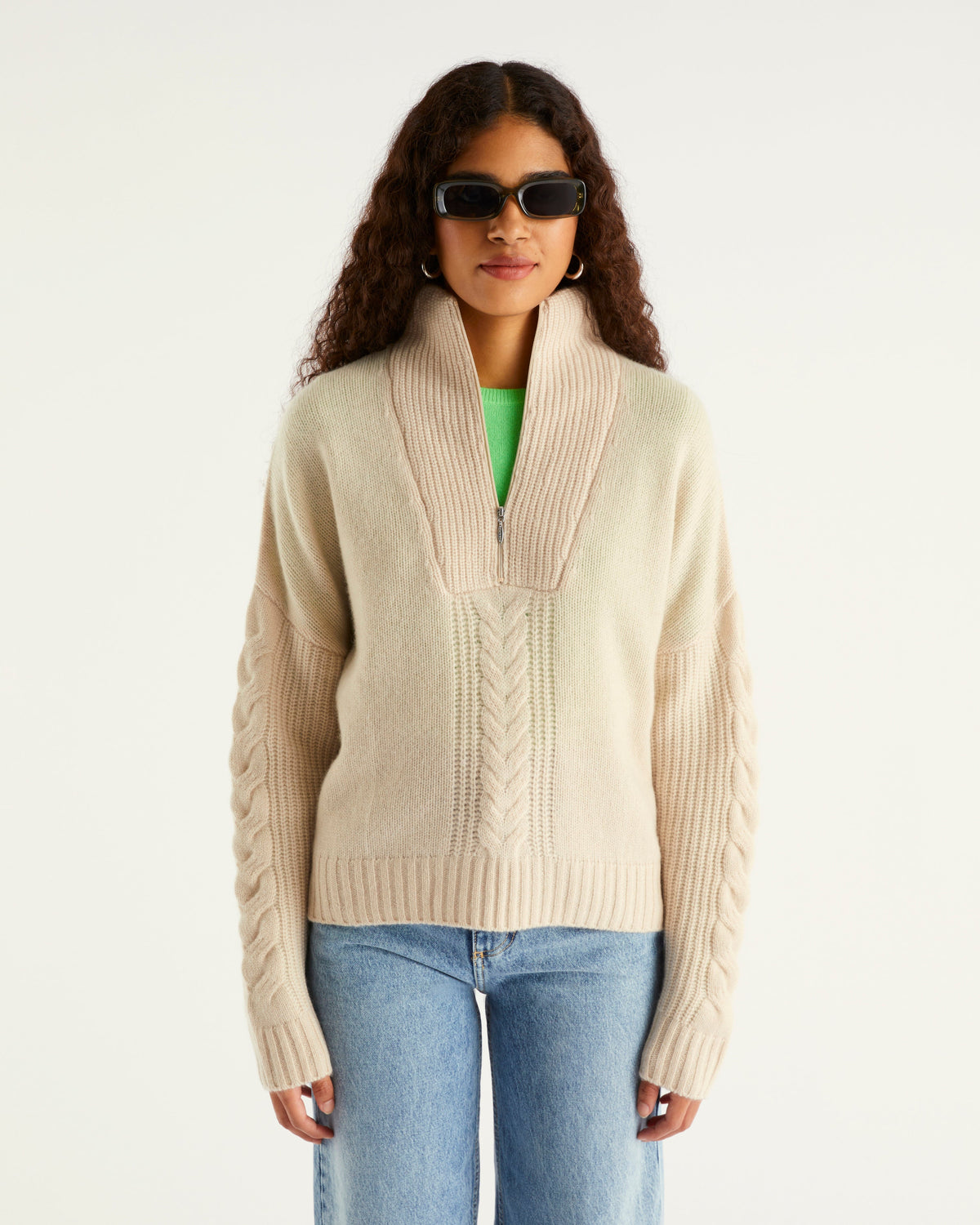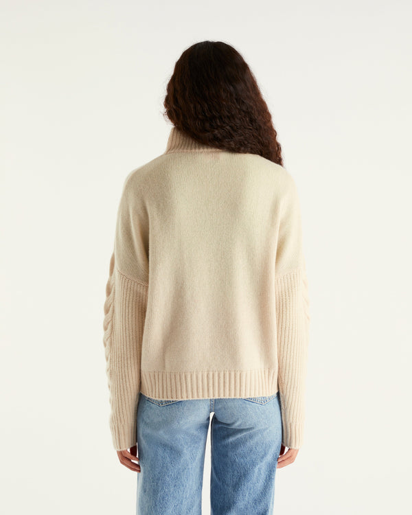 Camionneur Court À Torsades 6 Fils - 100% Cachemire - Sable