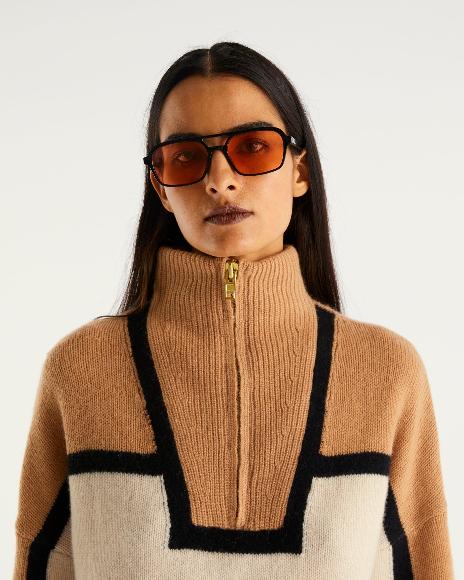 Short tricolor trucker 6 threads - 100% Cachemire - Sable