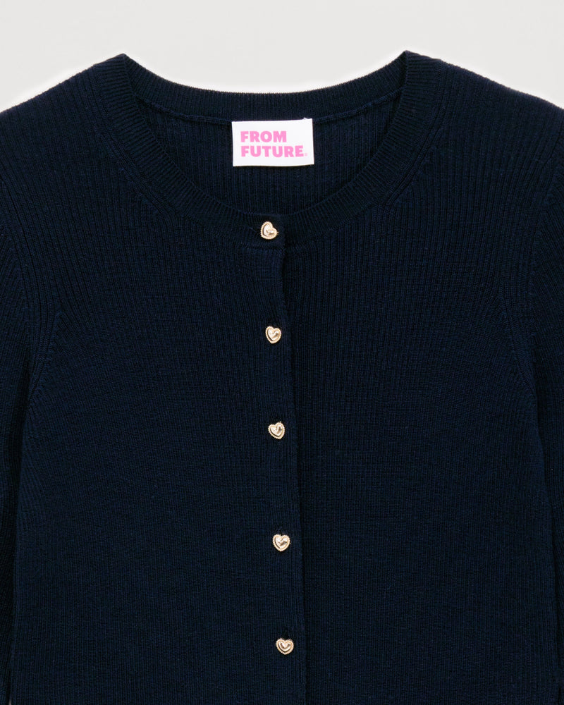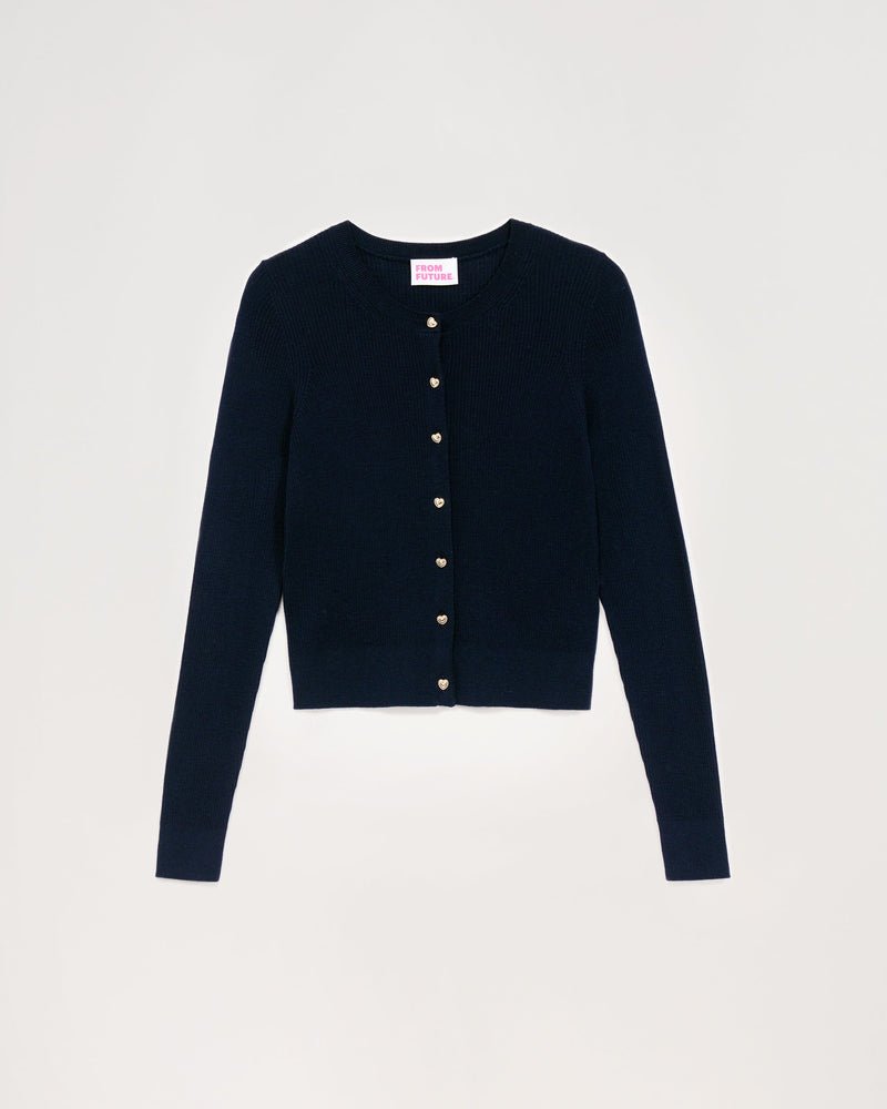 Cardigan à Côtes Bouton Fantaisie 2 Fils - 100% Laine Mérinos - Navy
