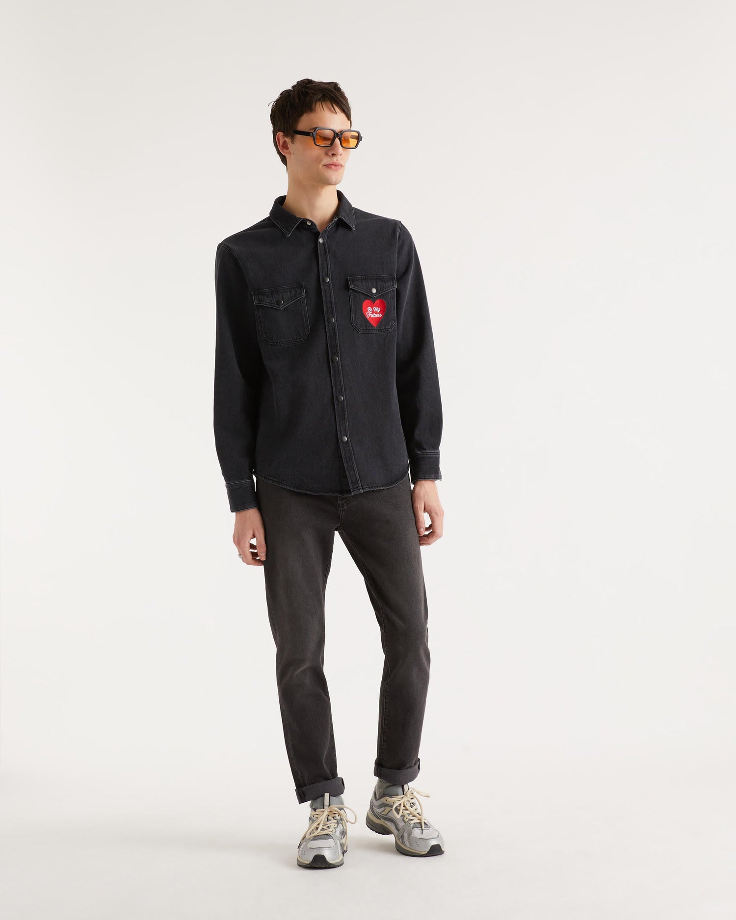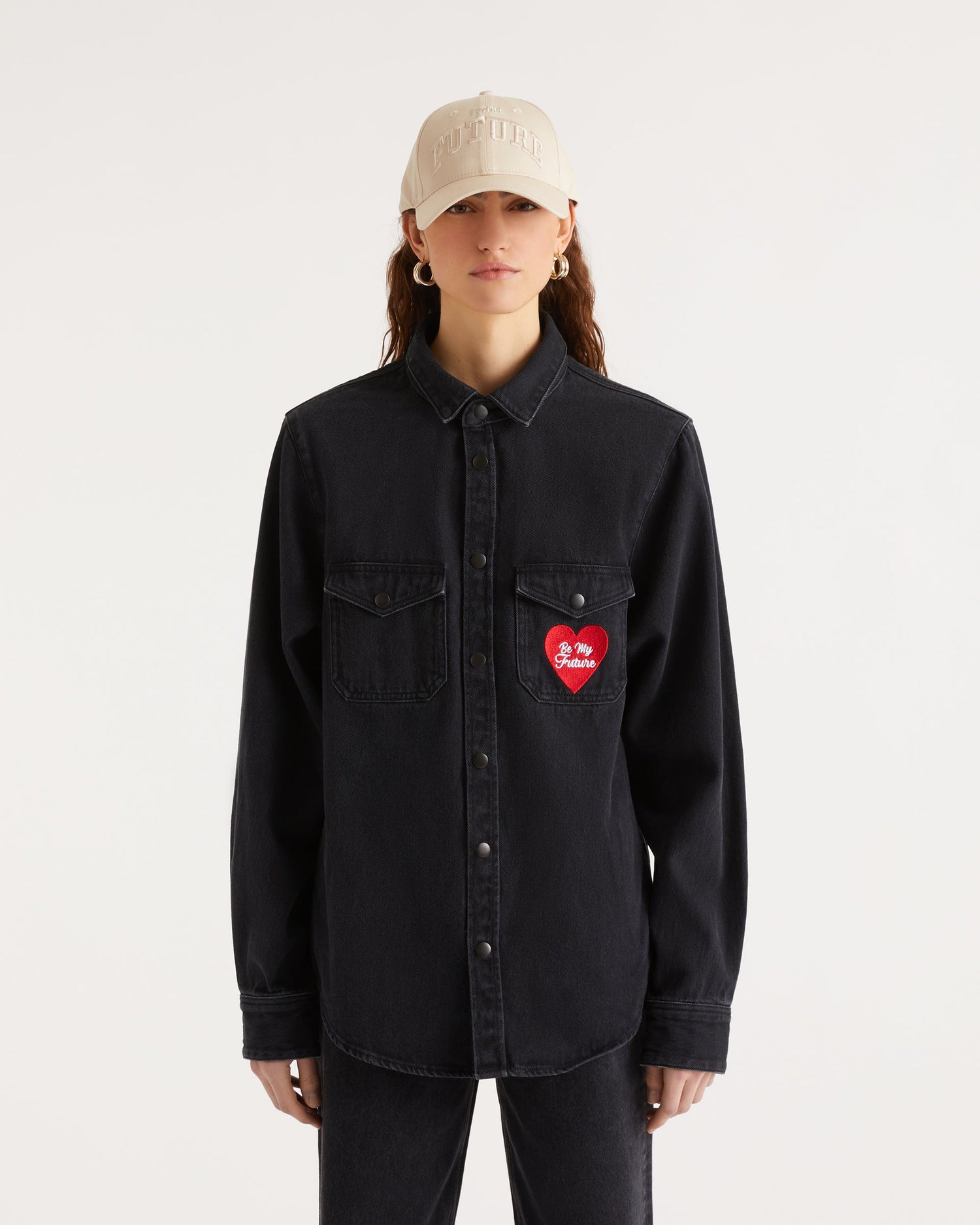 Chemise Broderie Coeur - Coton - Noir