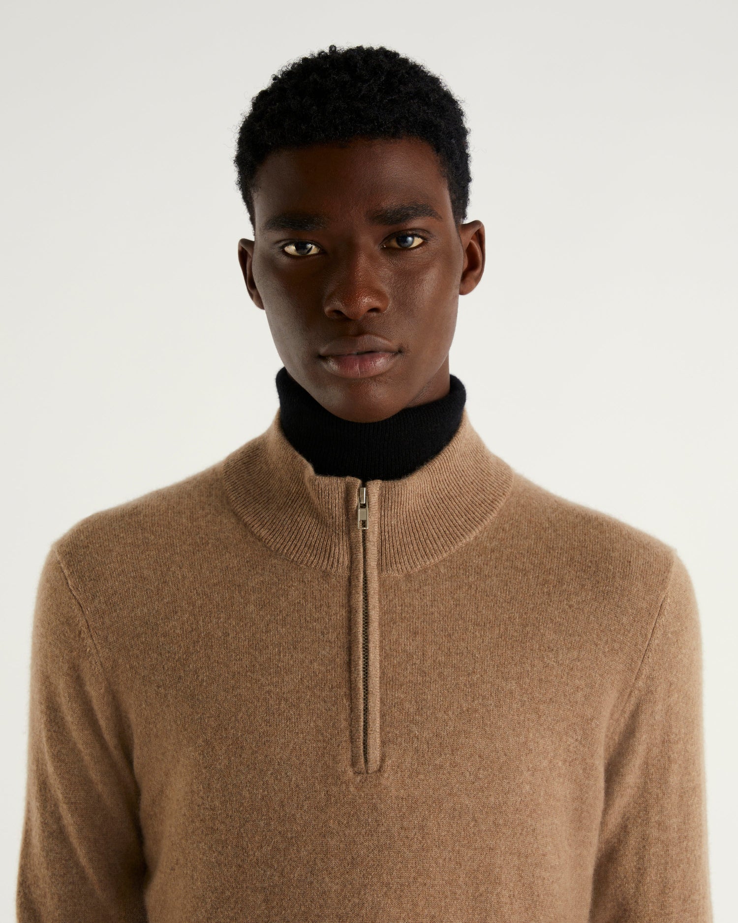 Sweater Col Camionneur Allégé 2 Fils - 100% Cachemire - Taupe