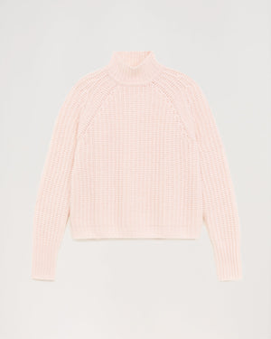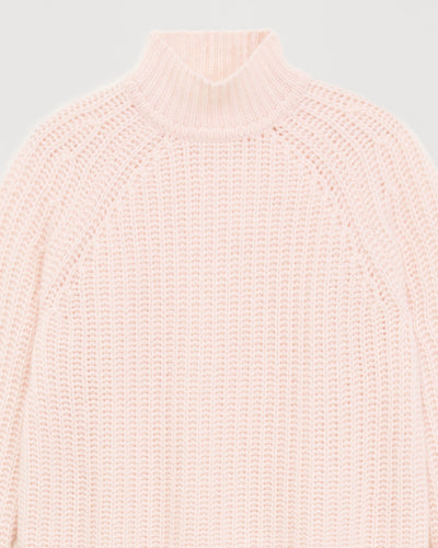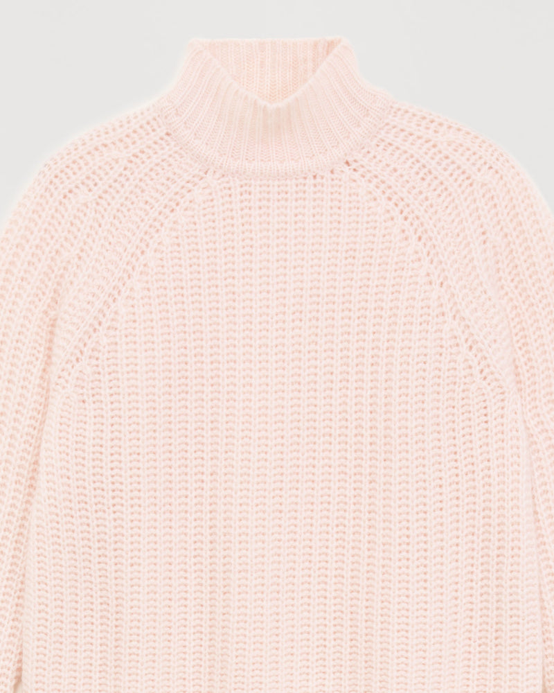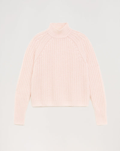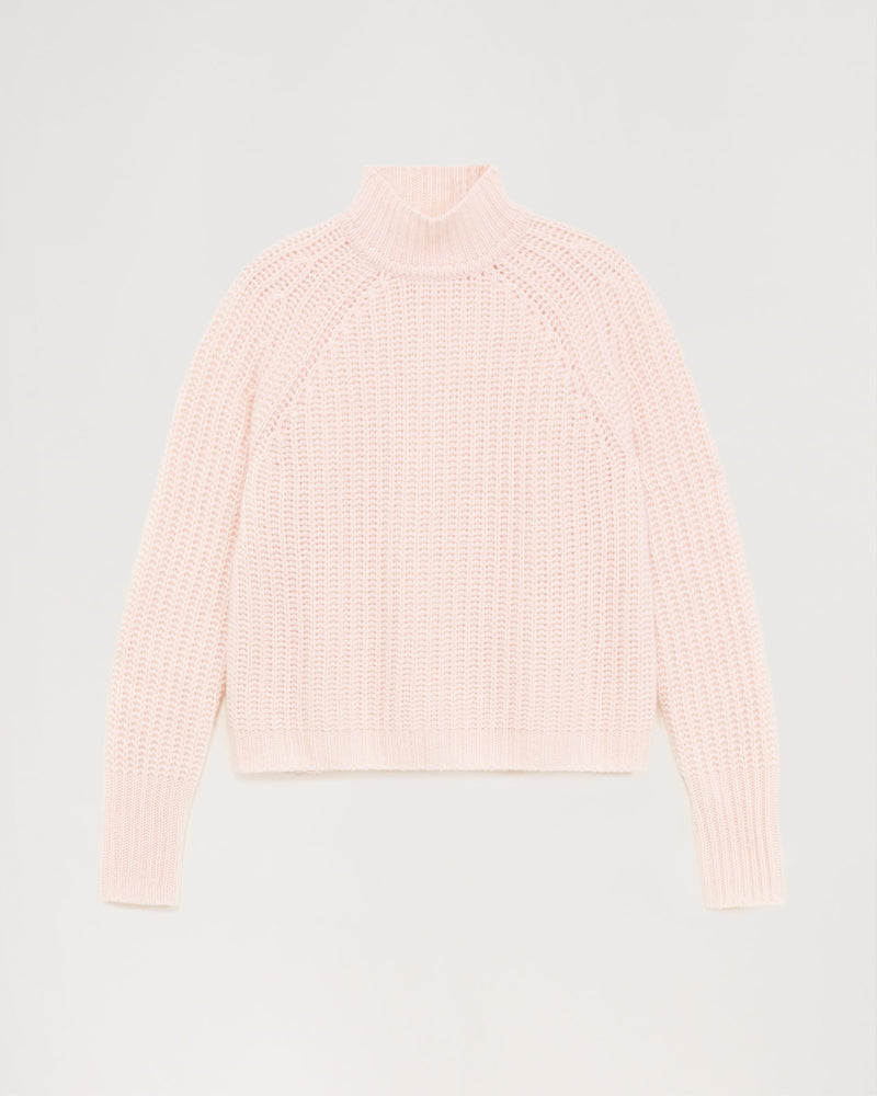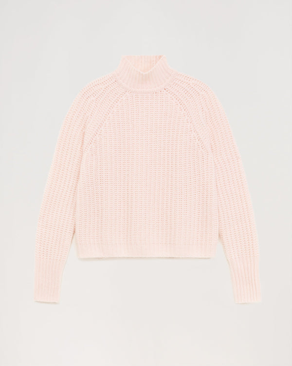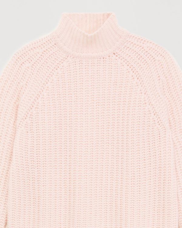 Short climbing collar with English ribs 10 threads - 100% Cachemire - Rose Poudre