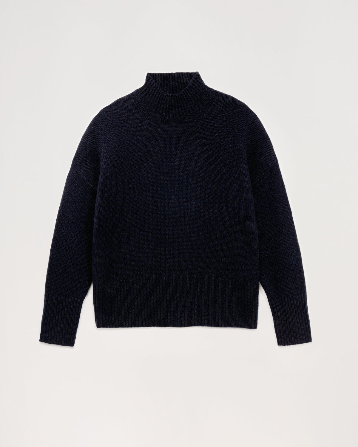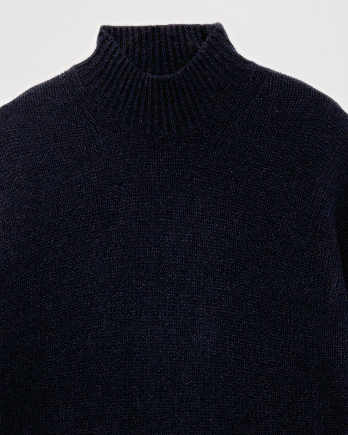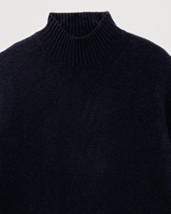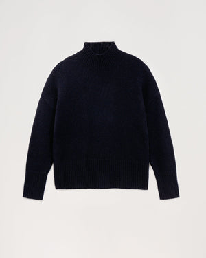 Sweater Col Montant Oversize 6 Fils - 100% Cachemire - Navy