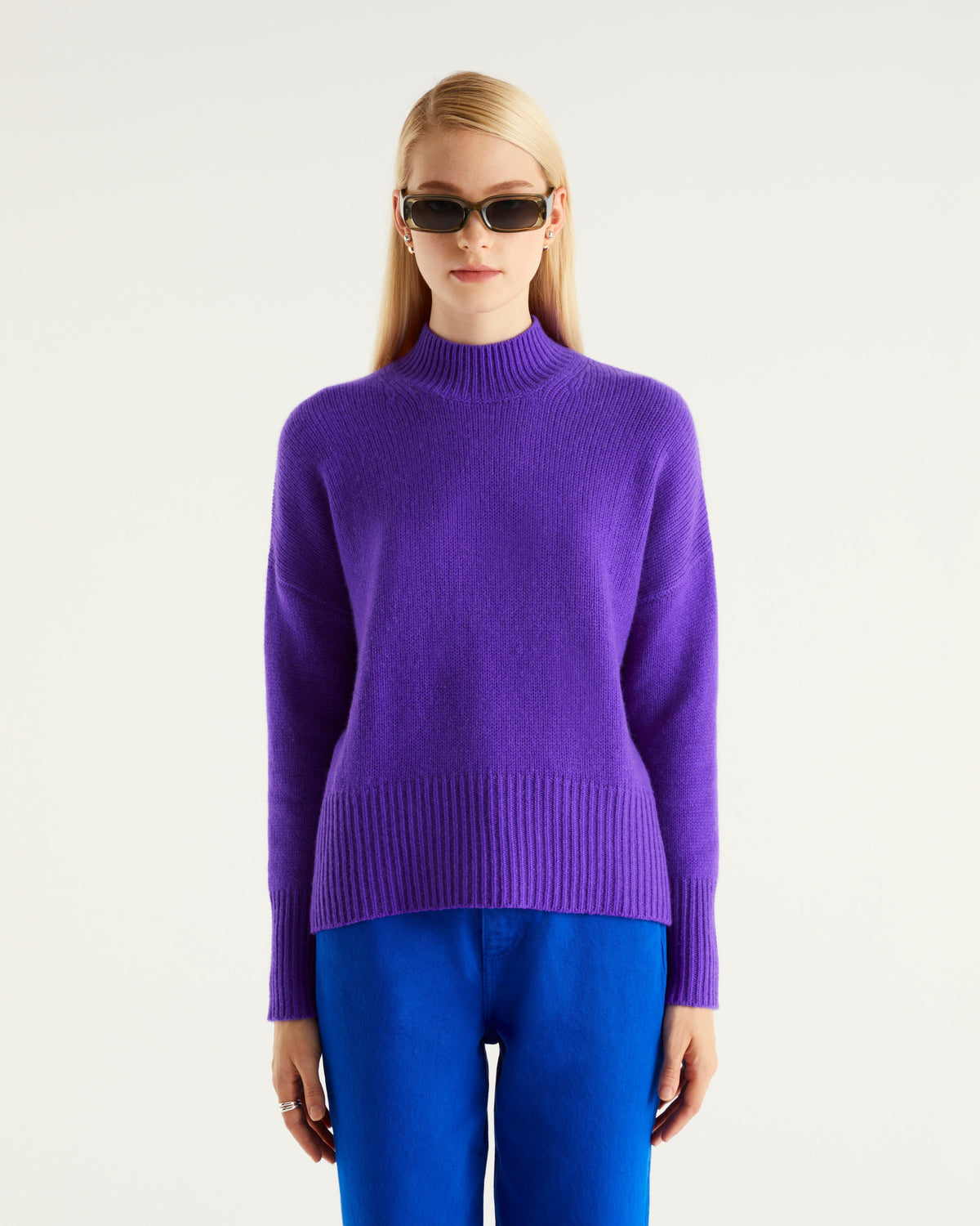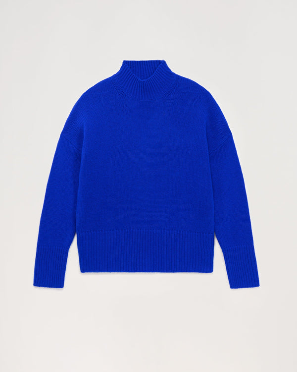 Sweater Col Montant Oversize 6 Fils - 100% Cachemire - Pop blue