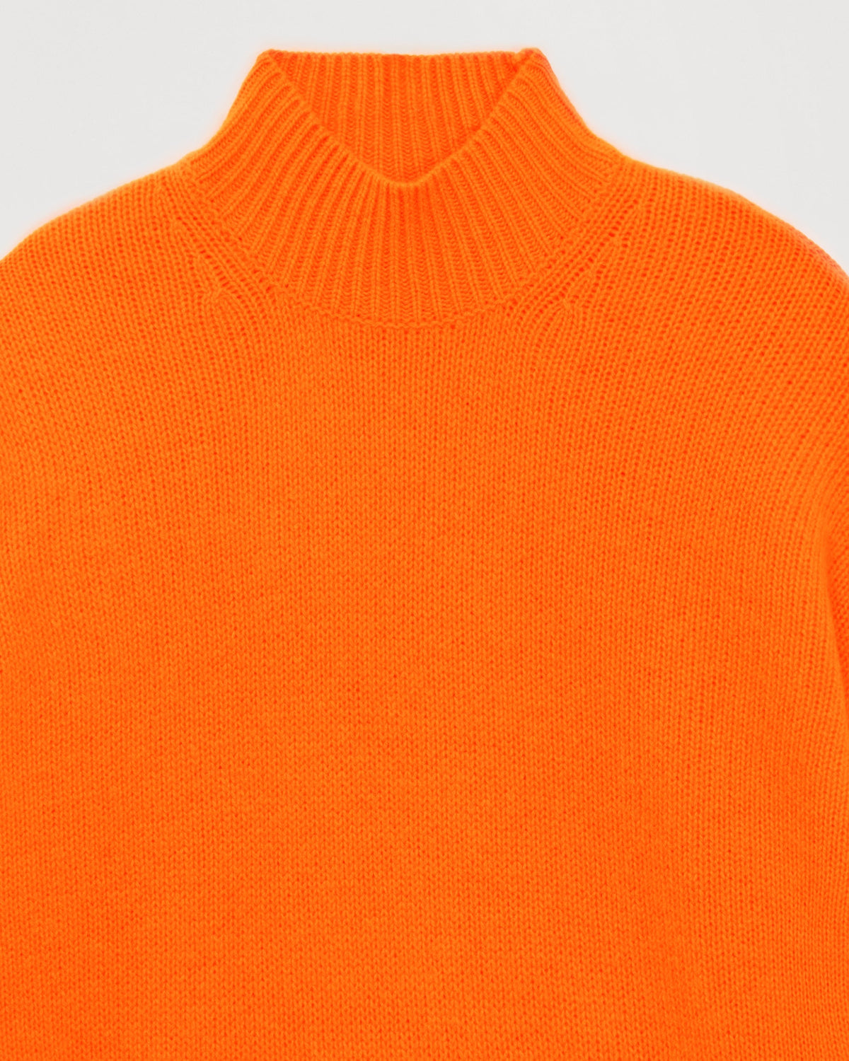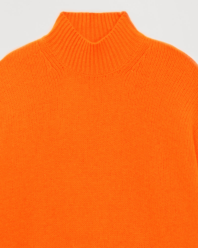 Sweater Col Montant Oversize 6 Fils - 100% Cachemire - Power orange