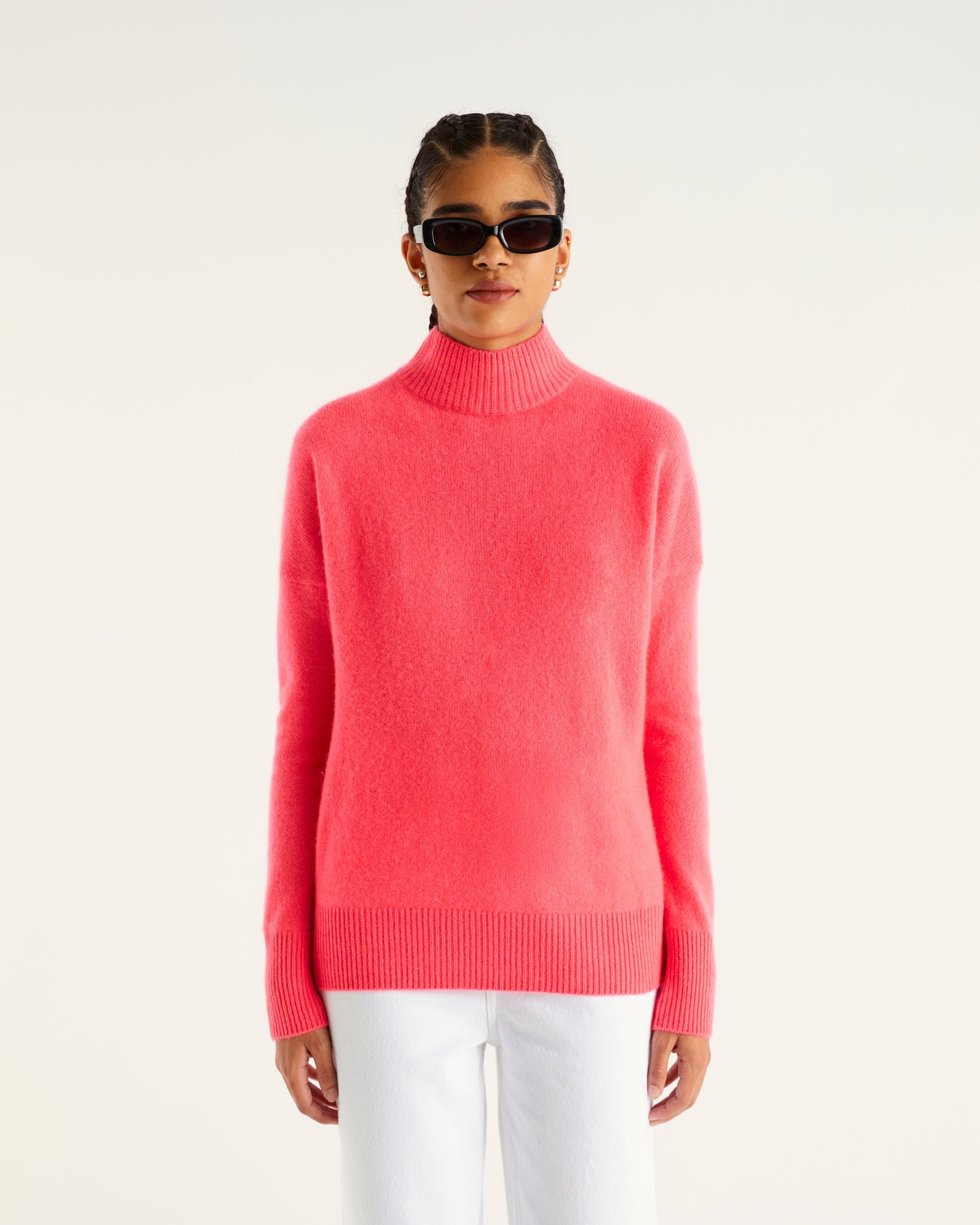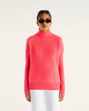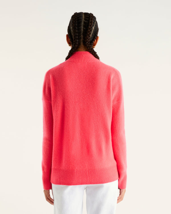 Sweater Col Montant Oversize Light - 100% Cachemire - Neon pink