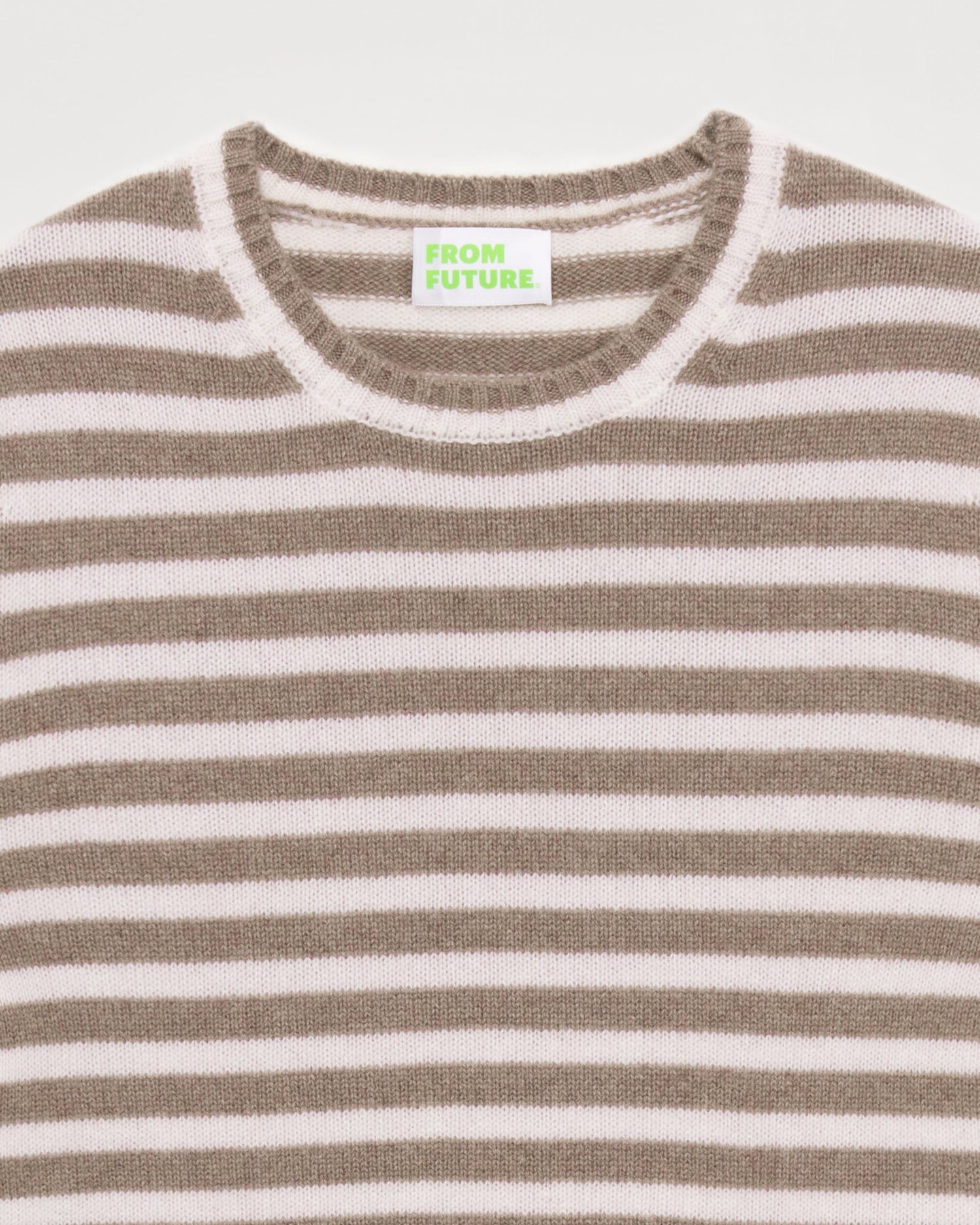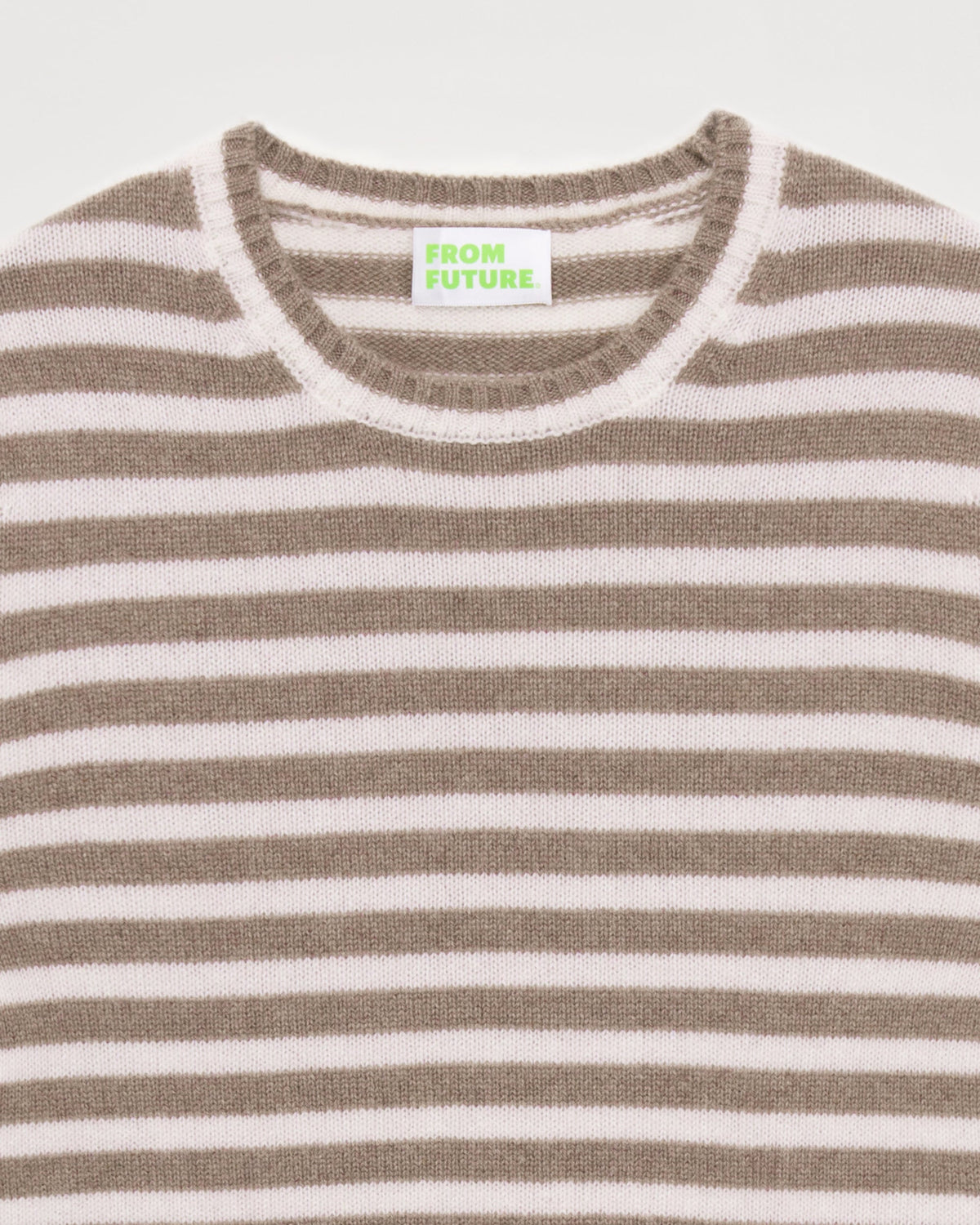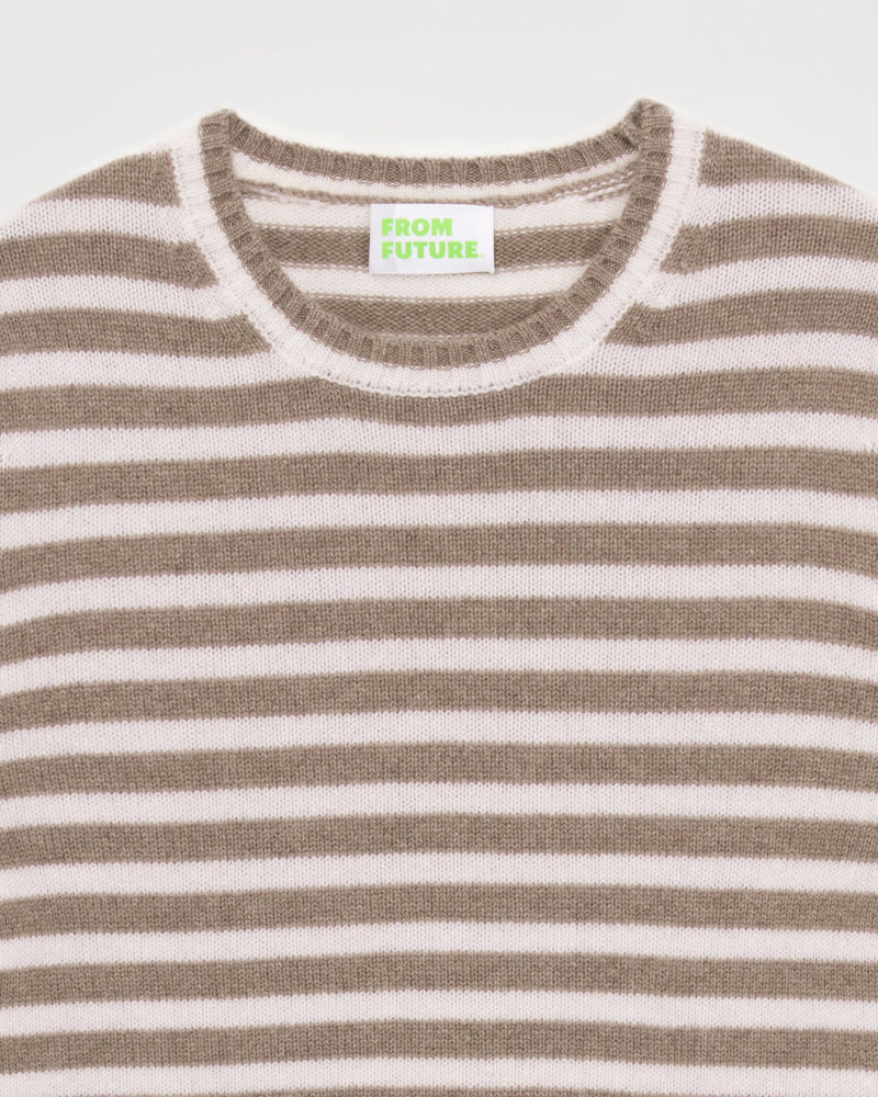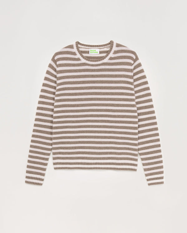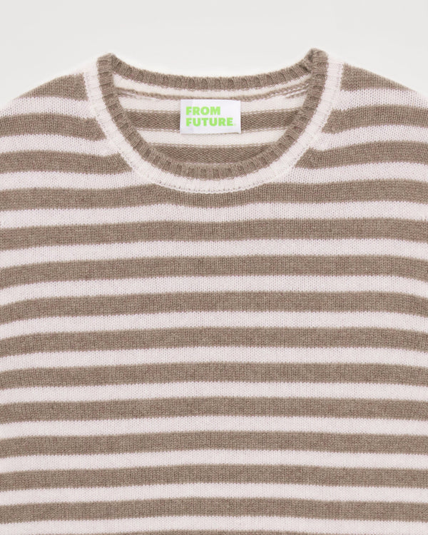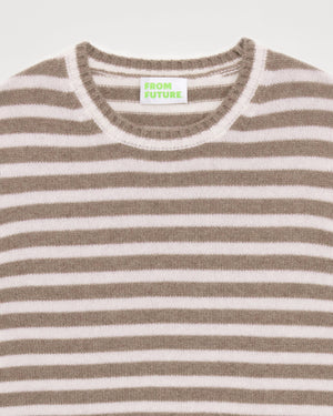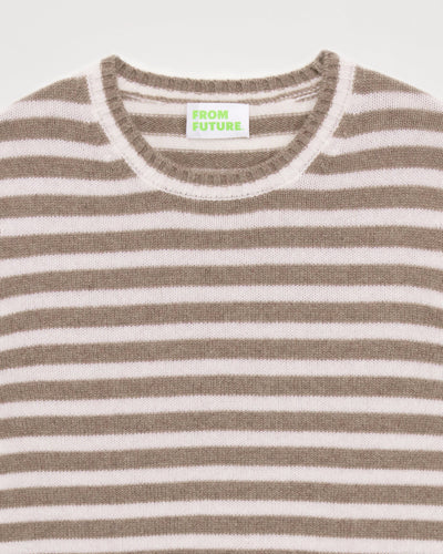 Sweater Col Rond À Rayures 4 Fils - 100% Cachemire - Taupe