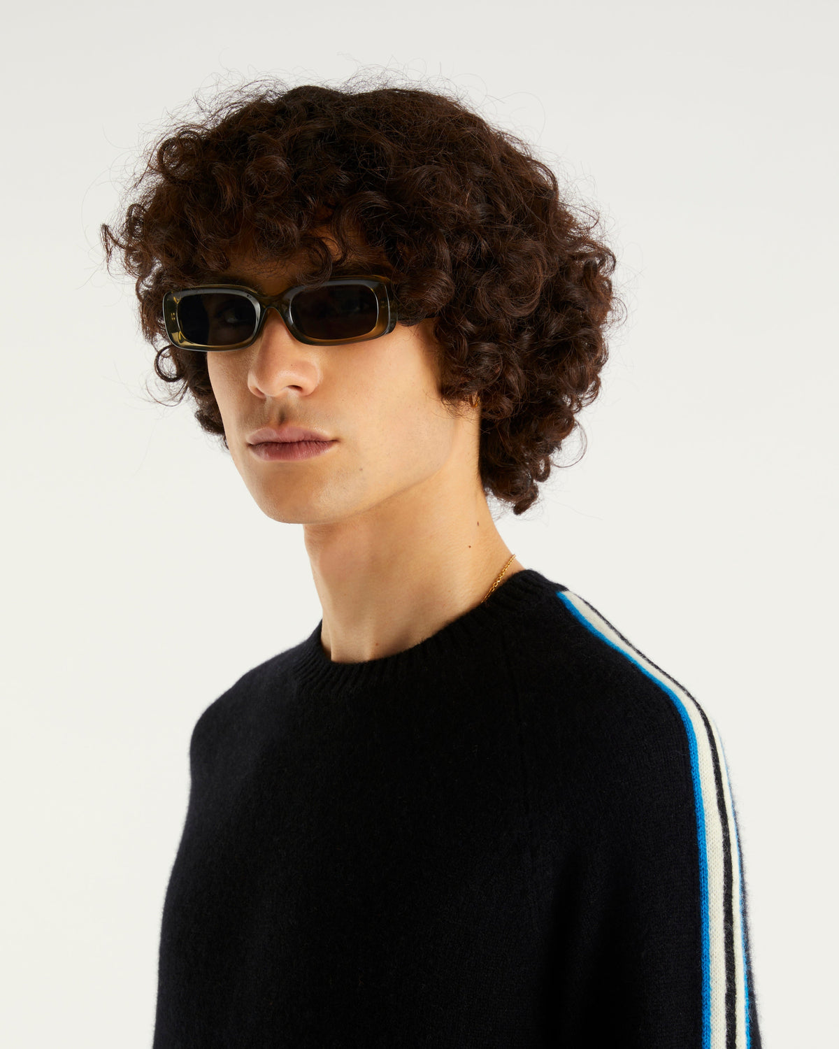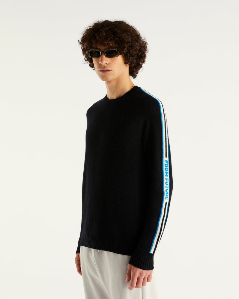 Sweater Col Rond Bande Manche From Future 4 Fils - 100% Cachemire - Noir
