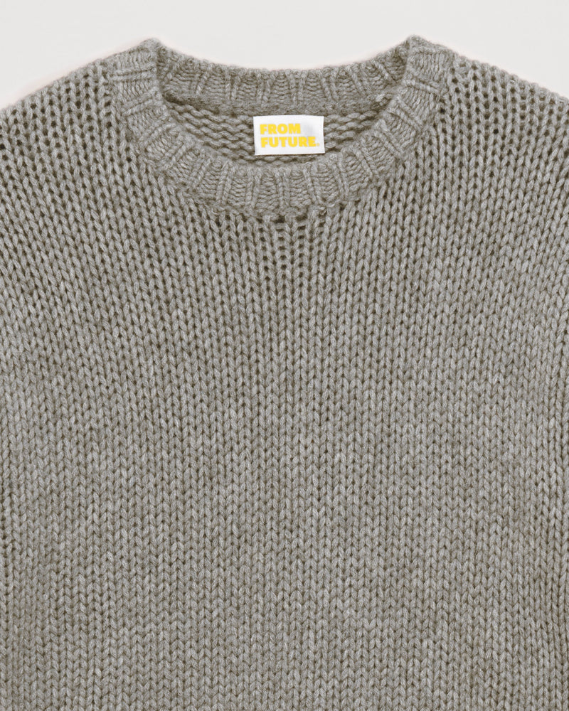 Sweater Col Rond Court 20 Fils - 100% Cachemire - Gris chine fonc