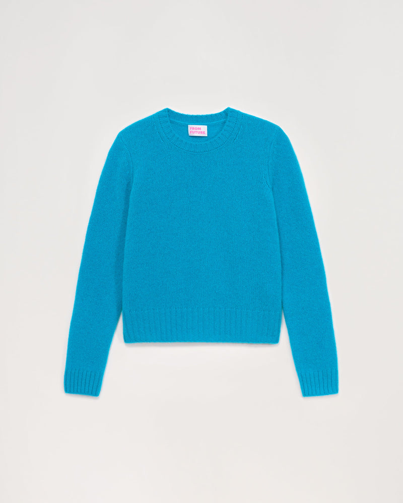 Sweater Col Rond Court 4 Fils - 100% Cachemire - Sparkle blue