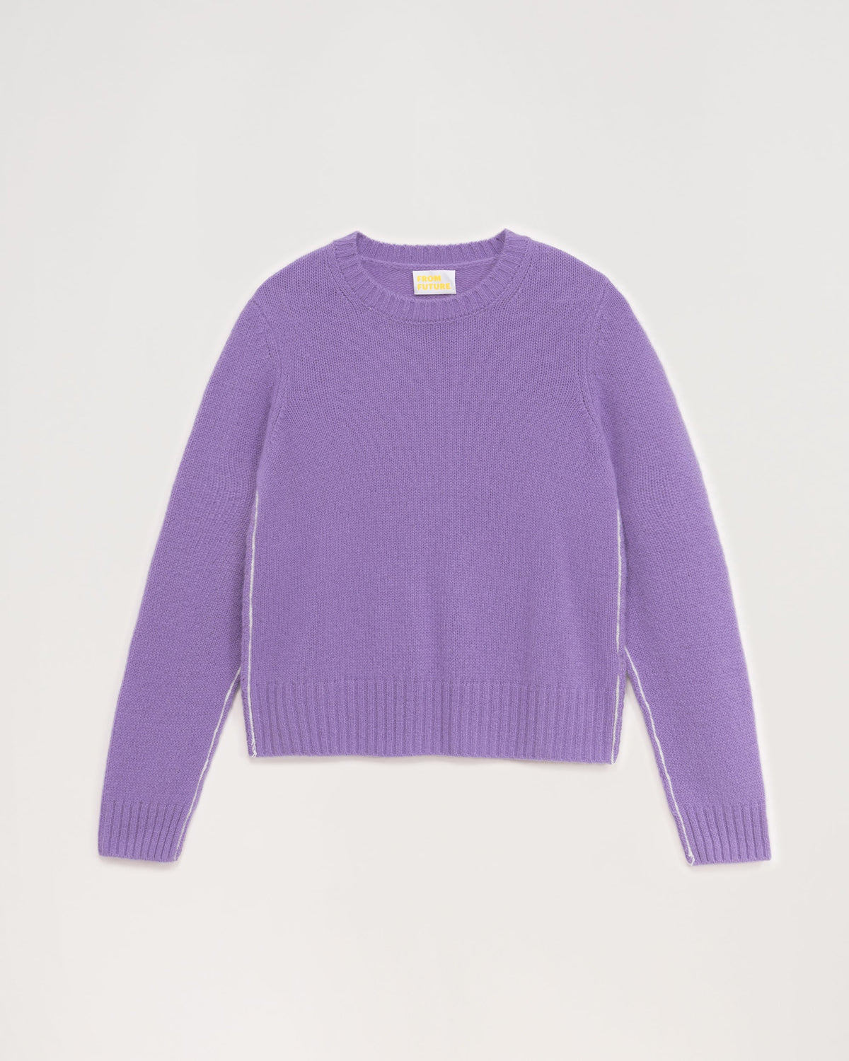 Round neck short tinning tin - 100% Cachemire - Power Lilac
