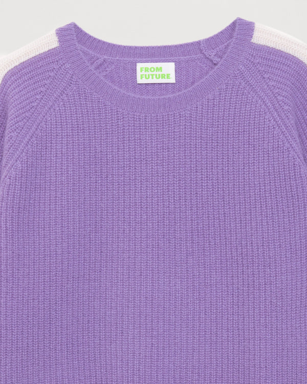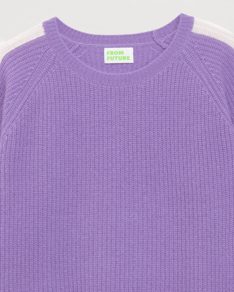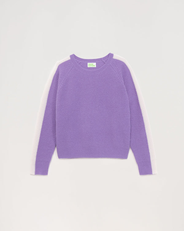 Sweater Col Rond Court Maille Perlée À Bande 4 Fils - 100% Cachemire - Power lilac