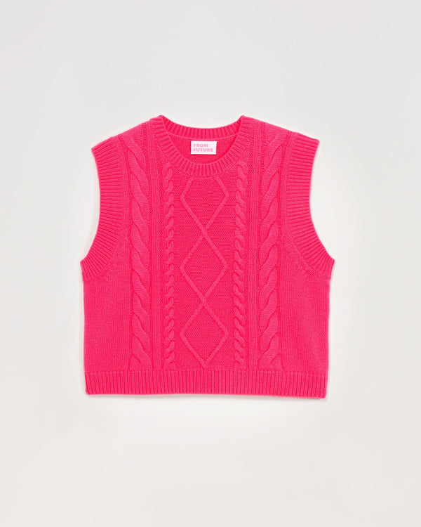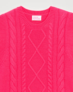 Sweater Col Rond Court Sans Manche À Torsades 6 Fils - 100% Cachemire - Winter fuschia