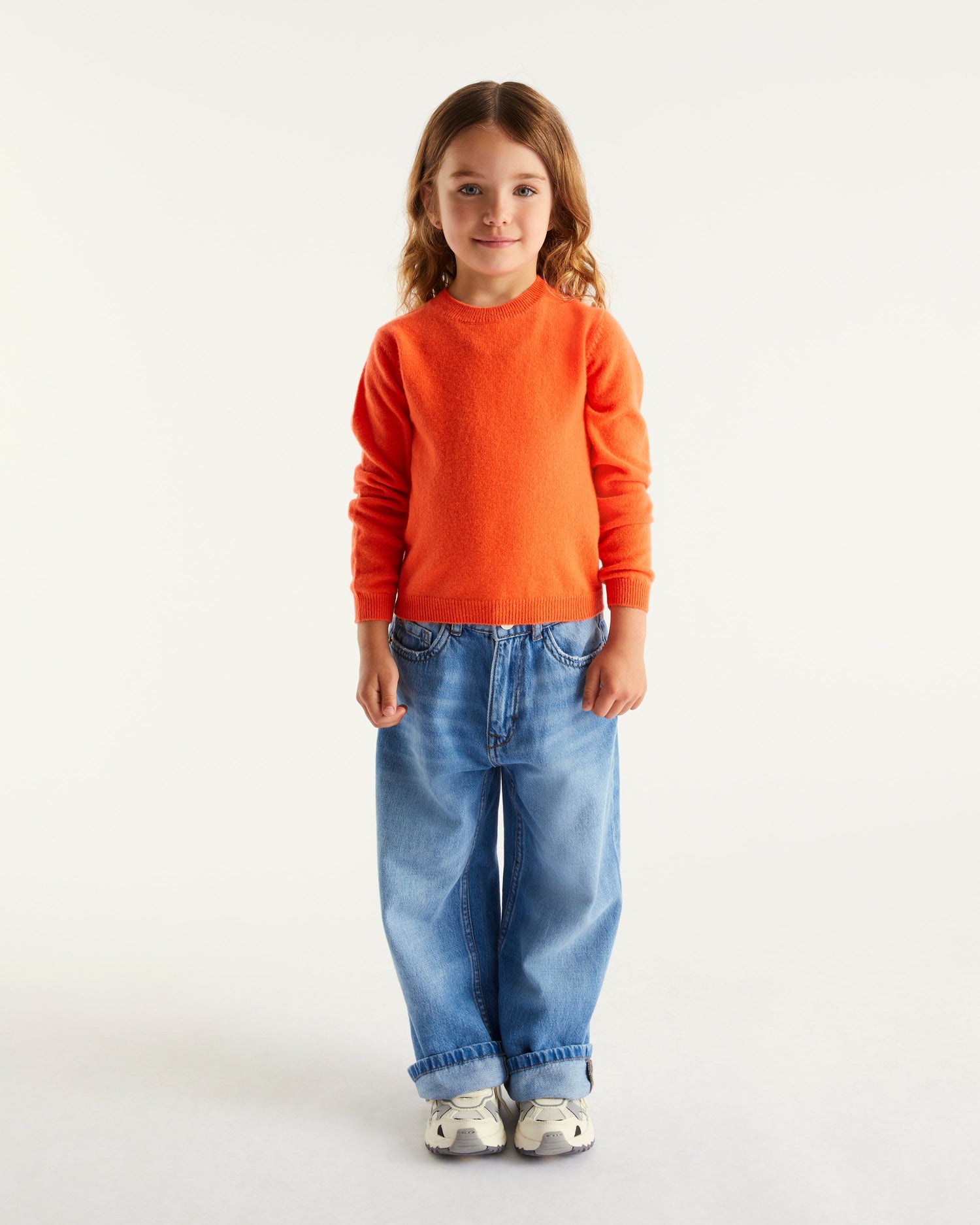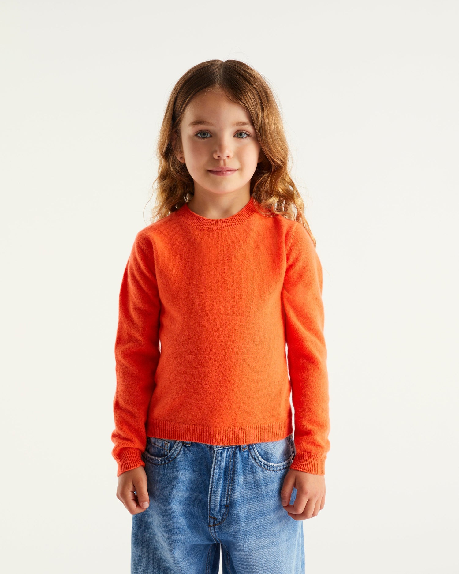 Sweater Col Rond Kids 2 Fils - 100% Cachemire - Neon orange
